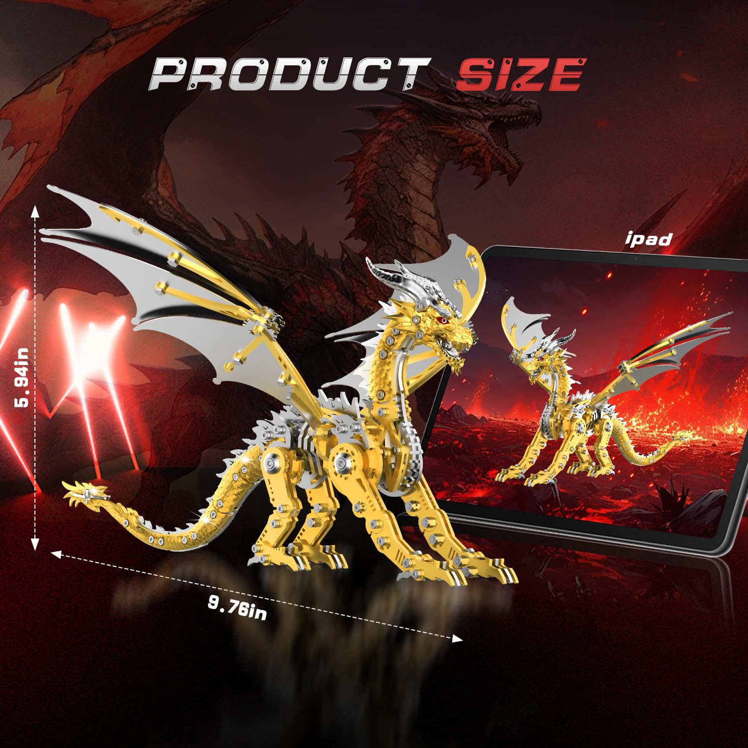 - 【Steampunk-Style Metallic Craft】Each stainless steel piece features a realistic texture with cyberpunk flair. Finished product size:9.76x5.94x5.94 inches, this mechanical dragon model kit doubles as a striking ornament for desks or modern offices, appealing to collectors of premium metalfigs.