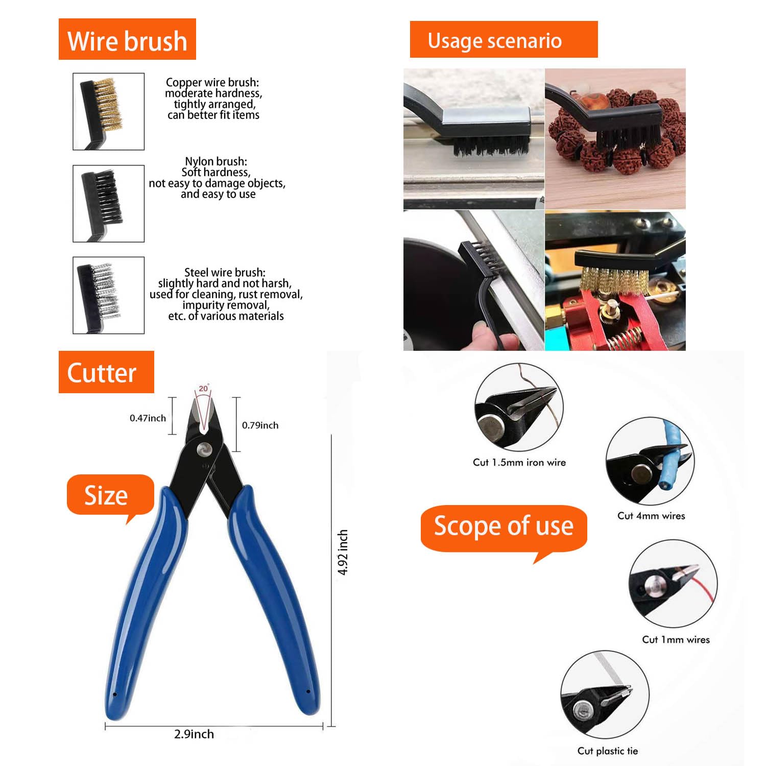 - 【And Other Tools】:1pc-170 Model Pliers,1pc-ESD stainless Bent steel tweezers,1pc-ESD Straight tweezers ,1pc-Cleaning stainless steel brush,1pc-Copper brush,1pc-Nylon brush,1pc-double-sided polished bar.