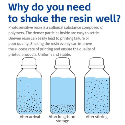 • 【Improve Printing Success Rate】Shake well and heat the resin, resulting in uniform composition and strong fluidity. Can better ensure the quality of printing. It can save you a lot of time and resin material costs.
