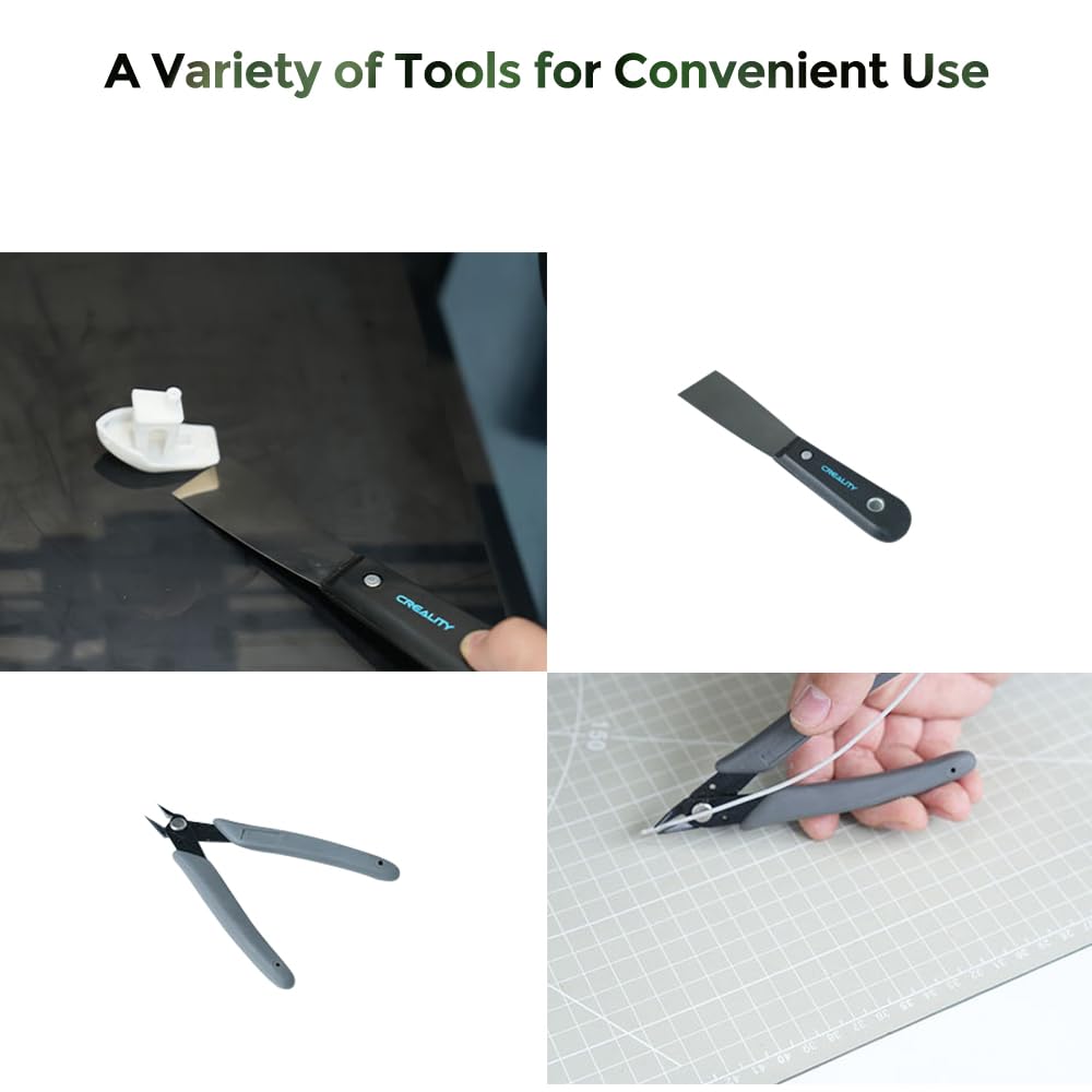 - 【High Quality】This 75-piece toolkit, which is 100% original from Creality, encompasses all the fundamental tools required for the 3D printing process, rendering it an optimal selection for both novices and seasoned 3D printing experts. The majority of the tools within this kit are crafted from premium metal, while the handles are fabricated from sturdy silicone and plastic. The entire assortment of tools is designed to be robust yet flexible, exhibiting resilience against breakage and fostering a sense of reliability for prolonged usage.