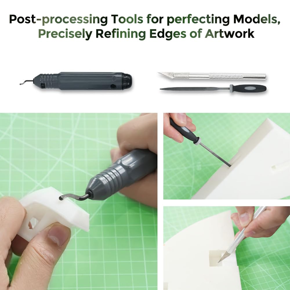 - 【Model Processing Tools】Our provisions include needle files for detailed shaping, deburring tools to eliminate unwanted rough edges, and carving tool kits tailored for the precise removal of excess materials and model supports. These implements are crucial in refining your 3D printing outcomes, elevating the finished products to a higher level of precision and elegance.