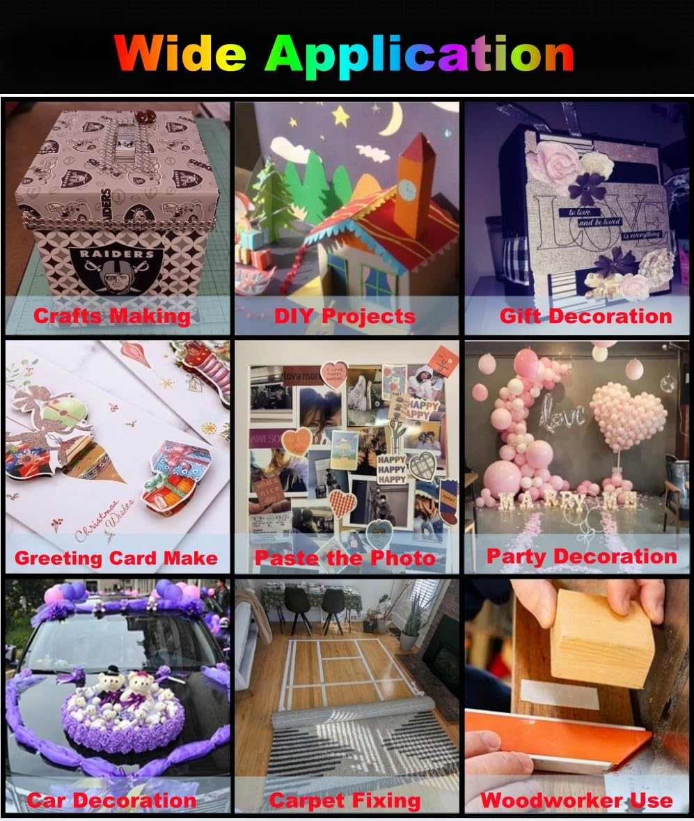 - Wide Application: This dual faced tape is a highly versatile product. It can not only connect heat sinks for efficient heat transfer, but also firmly hold carpets to prevent slipping. It's great for pasting posters and photos, and for installing signposts and decorative graphics. It's an excellent choice for DIY projects like craft and model making, and for attaching small decorative items. In woodworking projects, it can be used in splicing, machine cutting, CNC work, milling and anchoring.