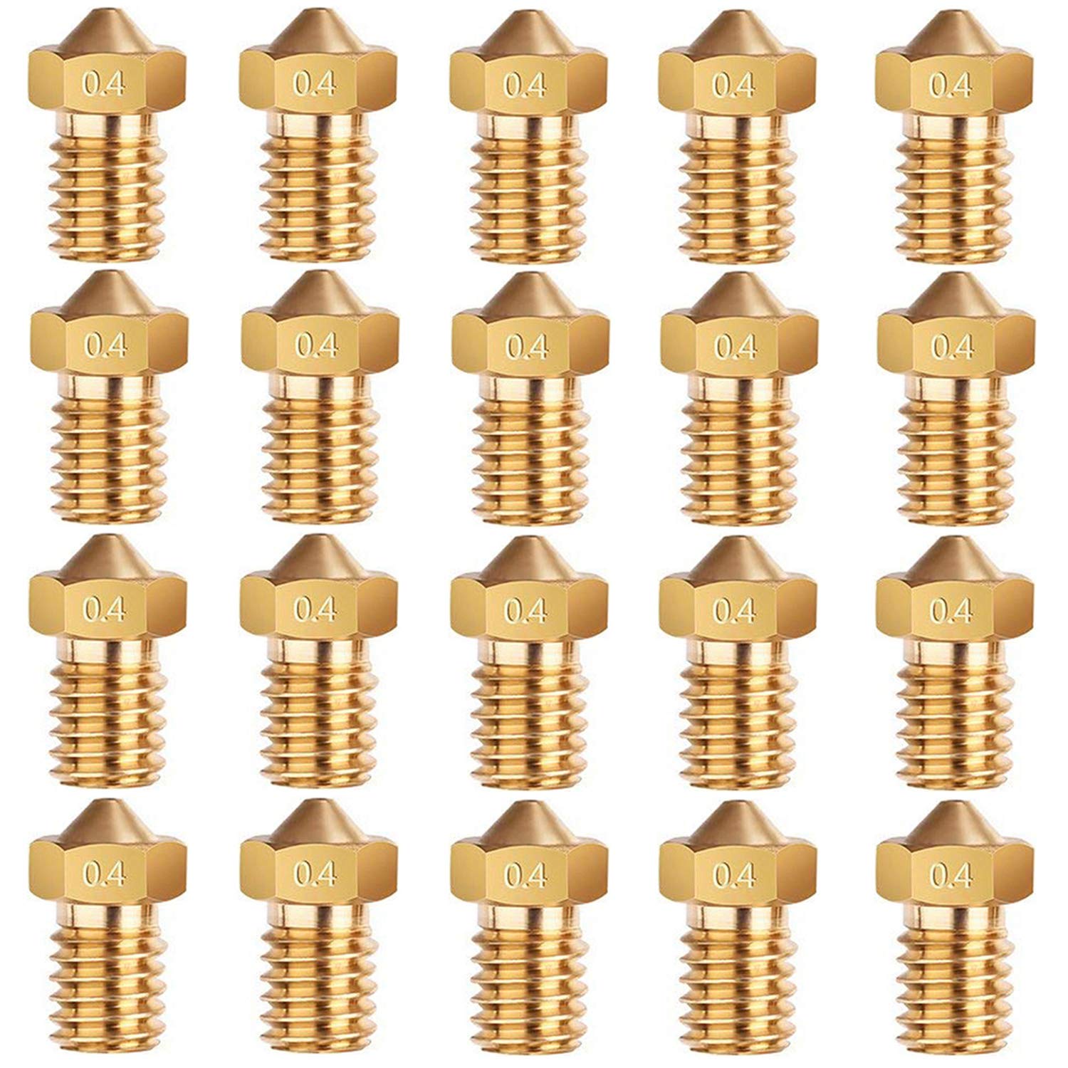 Details: ExcelFu M6 0.4mm Brass Nozzle Extruder Nozzle Print Head for 1.75mm Filament E3D V5-V6 3D Printer, Pack of 20