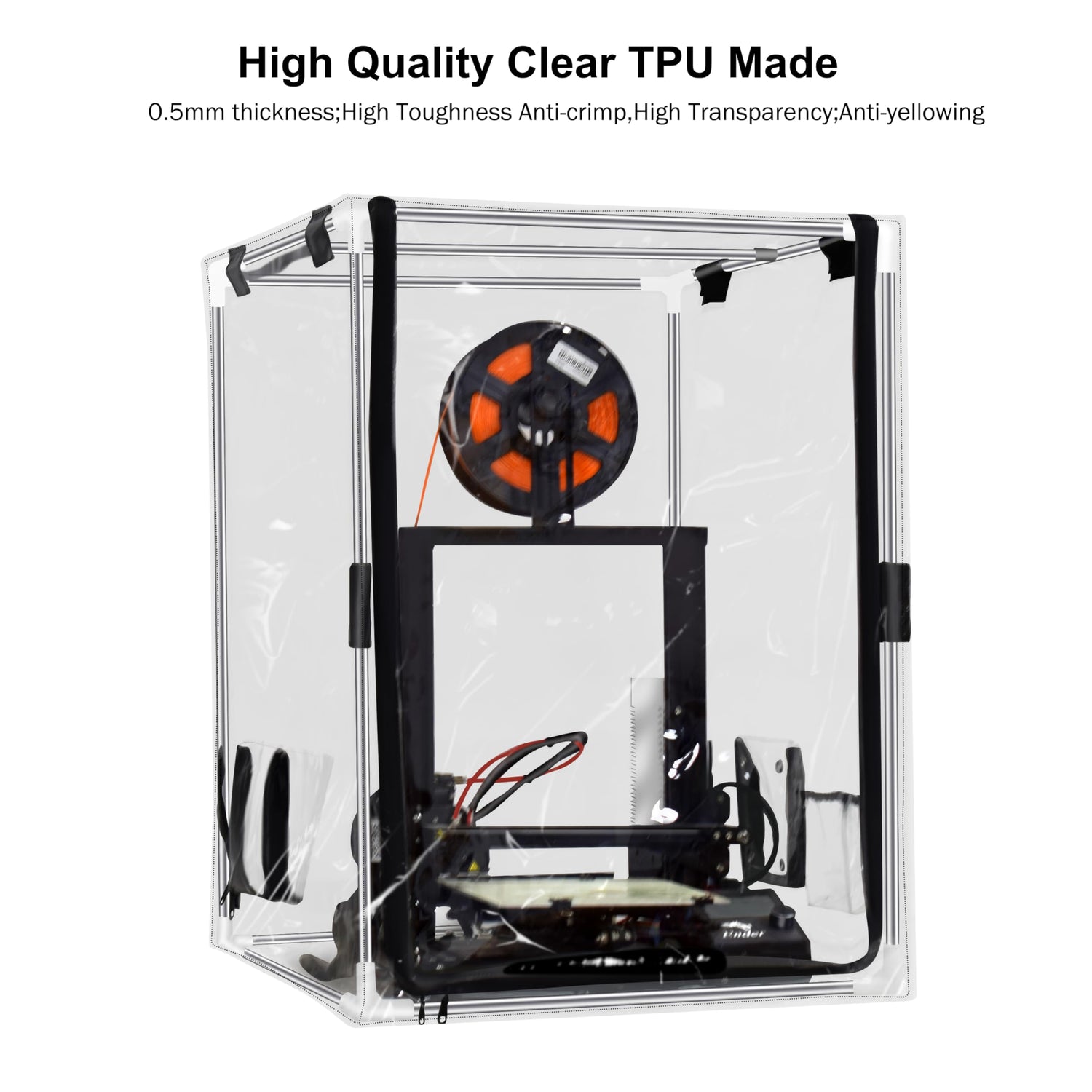 • <1.Transparent Covering & Cost Effective >Every 3D printer with unique outlook , it’s kind of a waste to cover them all by a fabric enclosure and have to light up to check printing progress, so some turn to build own transparent acrylic made enclosure, but it’s relatively expensive. This enclosure is transparent and non-expensive at all. You can watch printer in 360 degree and don’t need lighting in daily use.