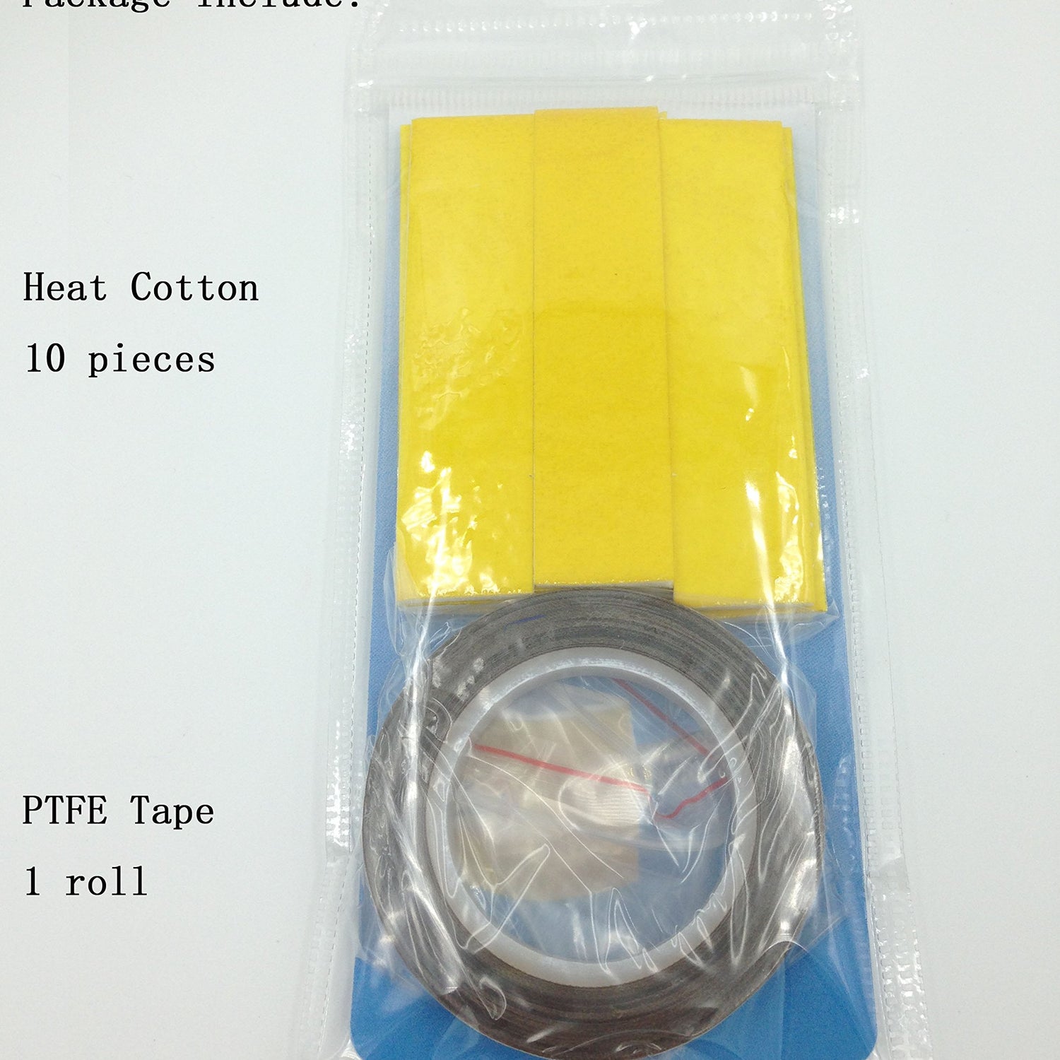 Details: Notice:1. After replace the nozzle, Please recalibrate the distance between nozzle and build plate to ensure the quality of print parts;2. Please do not use flame to test their heat resistance, because the flame's temperature is much higher than 300 degrees Celsius (572 Fahrenheit ).Size:Heat insulation cotton: Length 80mm/3.15in, width 20mm/0.78in, thickness 2mm;PTFE high temp tape: Total length 10m/32.8ft, width 8mm, thickness 0.13mmpackage including: 10PCS heat insulation cotton;One Roll of PTFE High Temp Tape