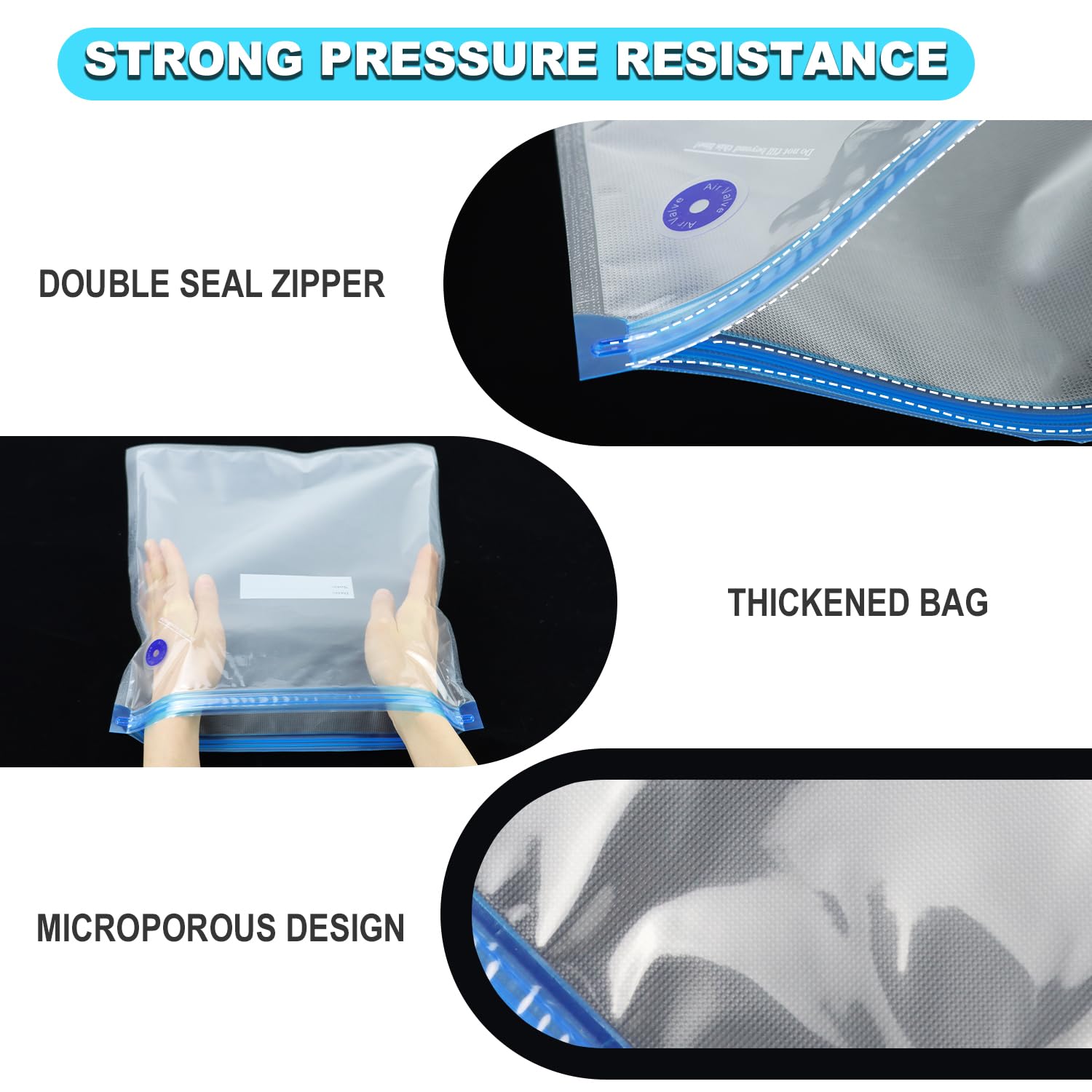 - Usage Tips: ①Leave 1-2 inches of space from the zip line to better vacuum performance and avoid over-stuffing. ②Avoid stuffing items with sharp corners to prevent punctures, Sticky tape can fix it if needed. ③Ensure the zipper is fully closed and check for any potential leaking holes, Use tape if necessary to strengthen the sealing of the valve port. ④Re-dry filament and Re-vacuum the bags every 1-2 months. Slow minimum air leakage is normal