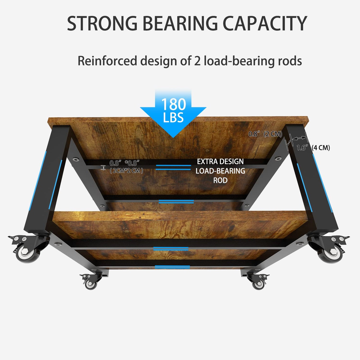 - 【Stable & Durable】We use reinforced design to add 2 load-bearing rods under each panel, also thickening the steel pipe of vertical support bar to 1.6’’*0.8’’ instead of normal size 0.8’’*0.8’’ to ensure its stability and load-bearing capacity more than 180lbs(80KG) , Use industrial wheels instead of ordinary plastic wheels, with strong load-bearing capacity and more durability.