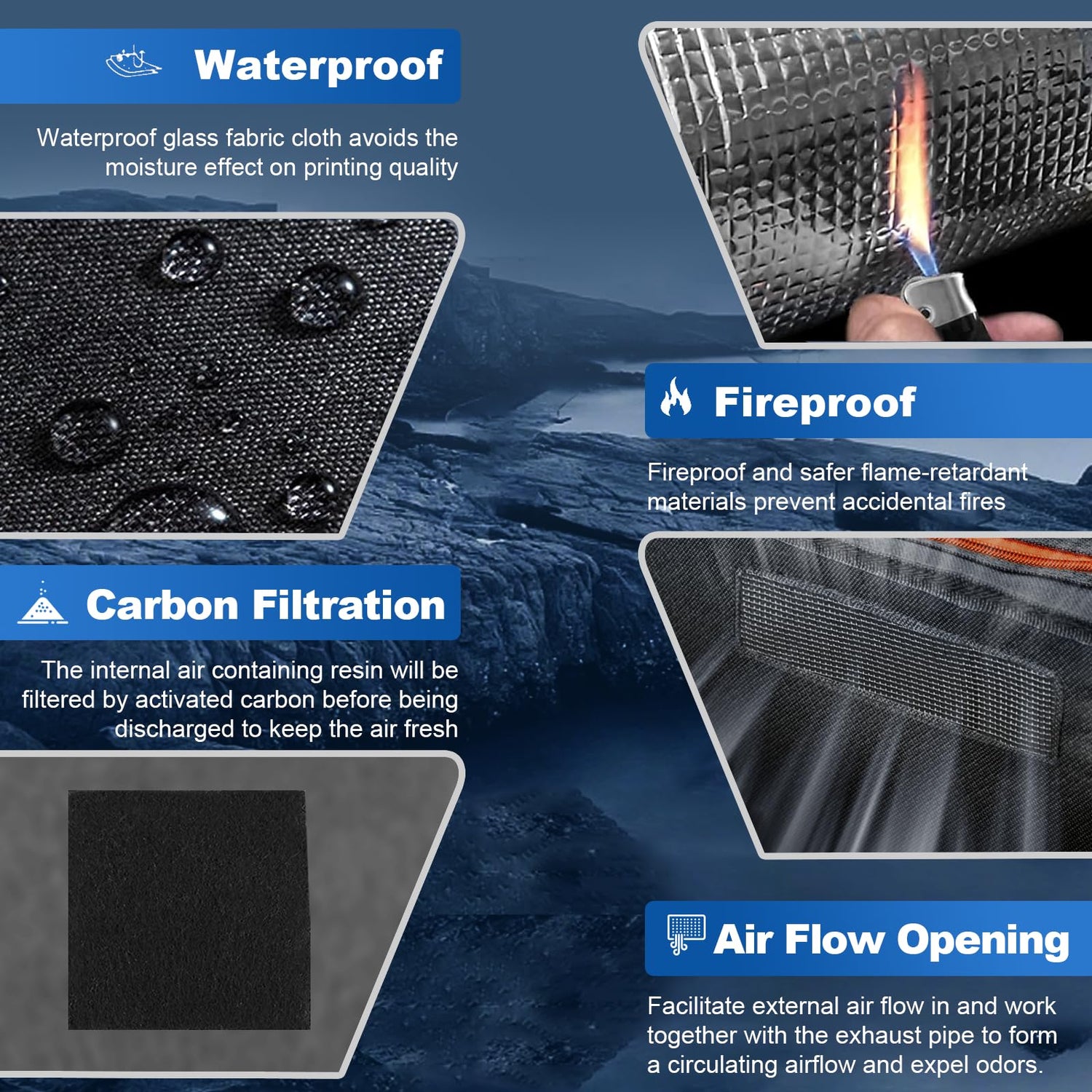 - 【Powerful Filtering odors and Emissions】Say hello to a clean and hassle-free resin printing experience with our Resin 3D Printer Enclosure! Built-in carbon filter sheet can effectively adsorbs and eliminates the odor of resin, ensuring a pleasant and odor-free working environment. The addition of exhaust fans and expandable pipes allows for the convenient discharge of polluting gases, maintaining clean and fresh air in your printing space.