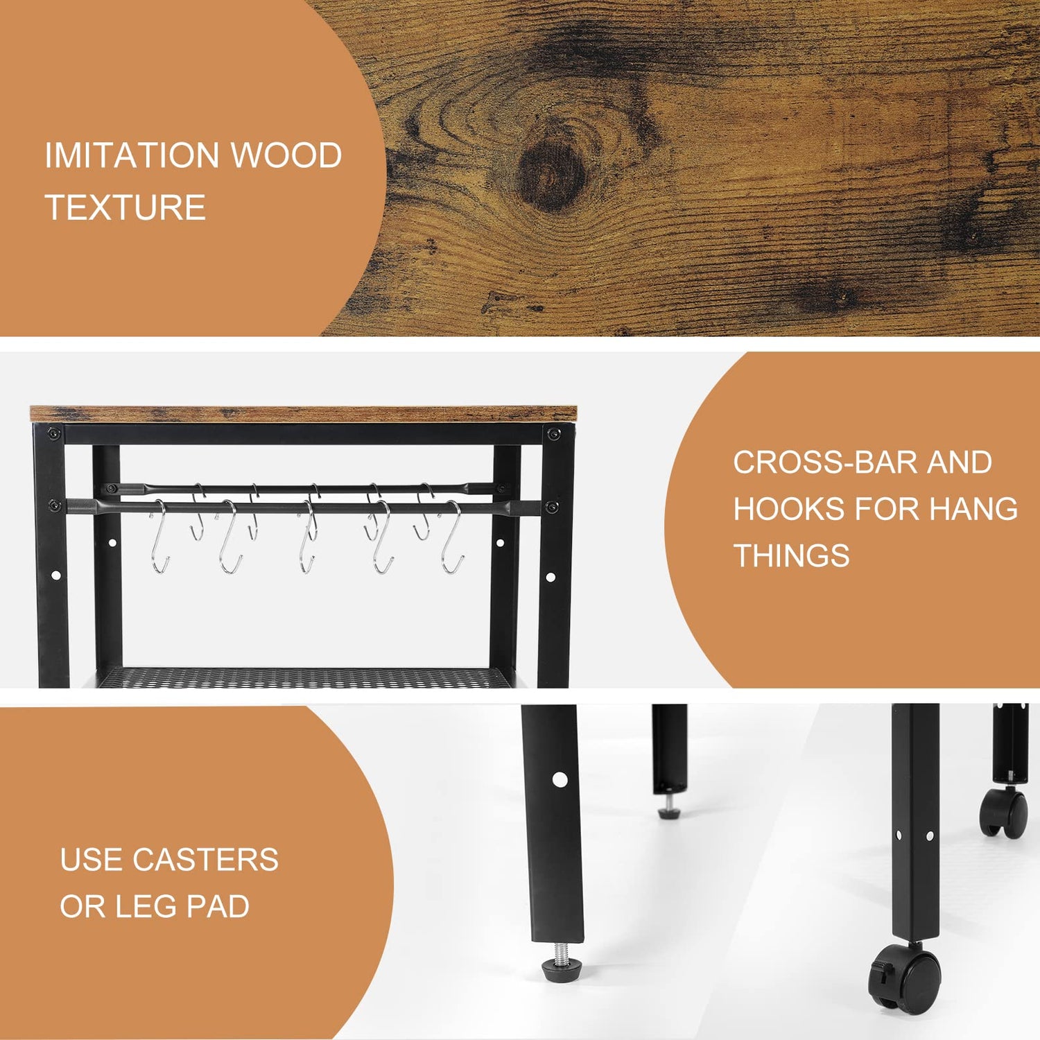 - STURDY & USEFULLY: Use strong metal frame structure, maximum bearing capacity is 143 lb (storage shelf is 44 lb), good for mini fridge stand, printer stand, aquarium stand, don't worry falling apart and deformation, plus 2 iron bars on the side with 10 hooks, more usefully.