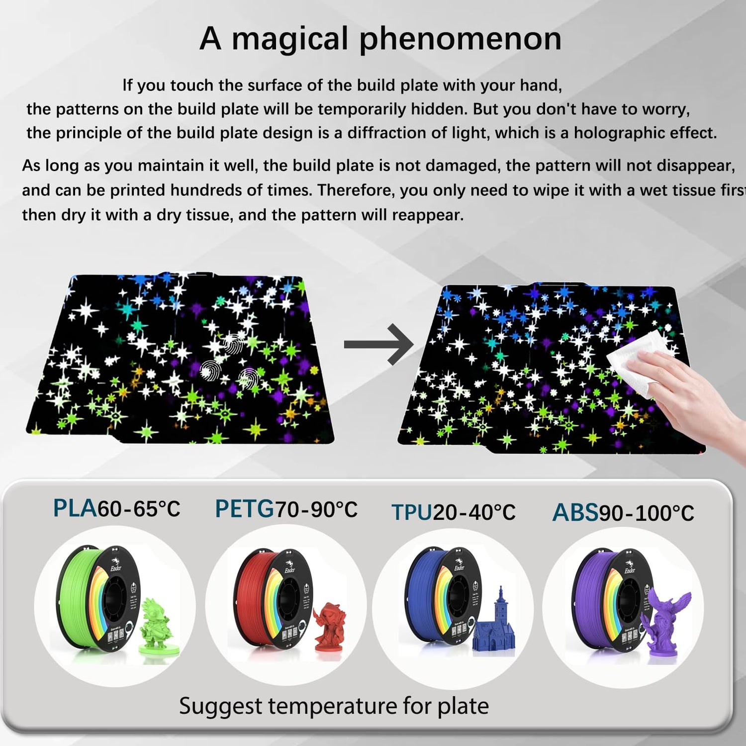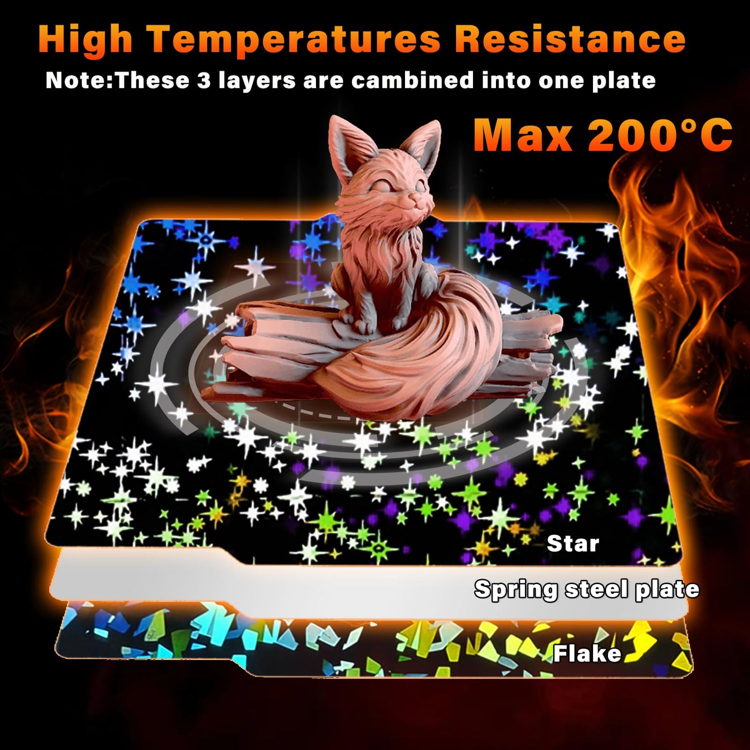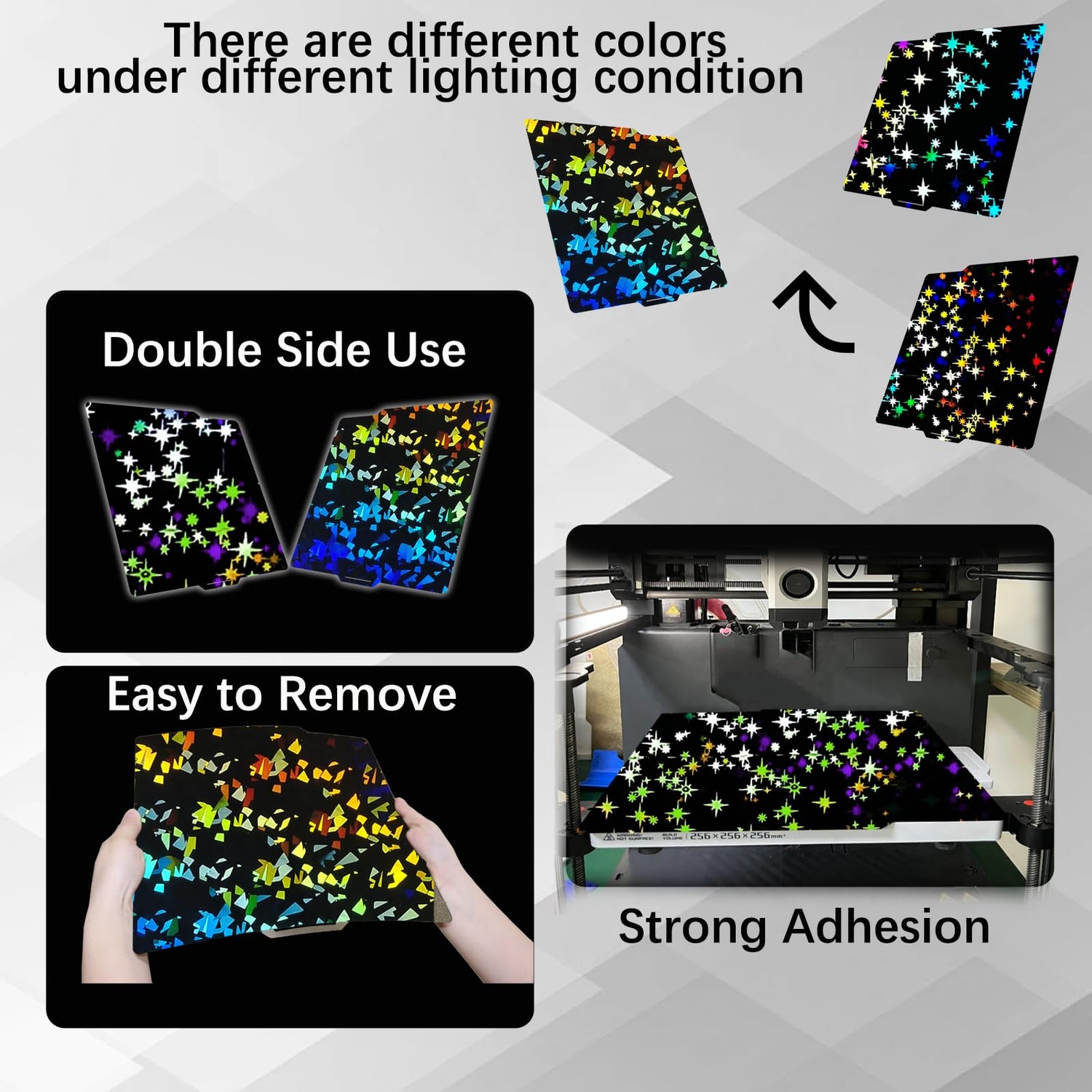 Details: Sahvaim 3D Printer Platform Upgraded H1H Build Plate for Bambu Lab X1 X1C X1E P1P P1S A1, Double Sided Textured Flake+Star PEY Spring Steel Sheet Flexible Plate for Bambu Lab 3D Printer 257x257mm.