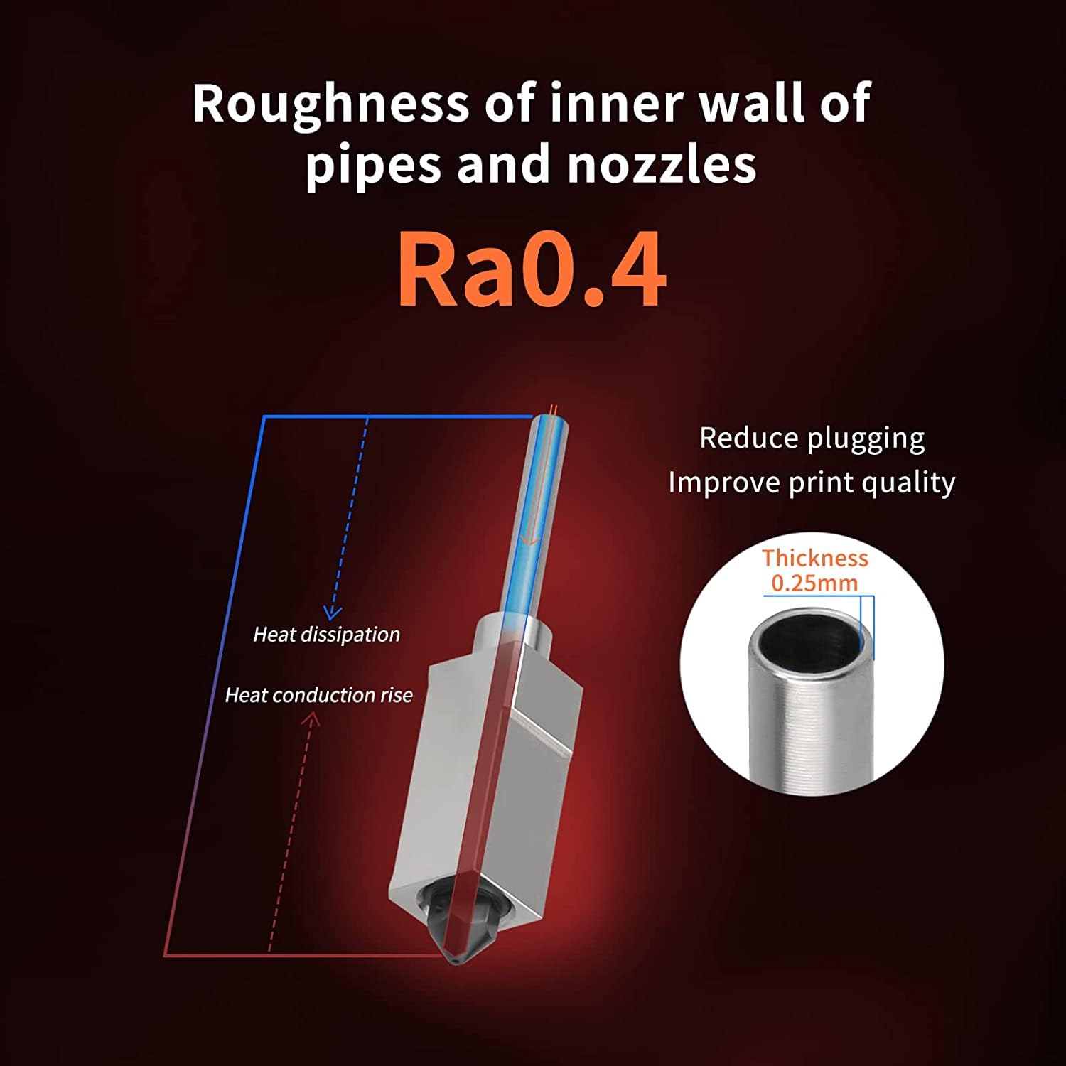 - This Kit is Upgraded, insides plated copper heat block with nickel plating treatment upgrade, high temperature resistance 300C degree printing, fast heat conduction. The interference of the TC4 titanium heatbreak tube and the heat block increases the step surface at the bottom of the throat to completely eliminate the phenomenon of falling off and reduces the possibility of leakage.