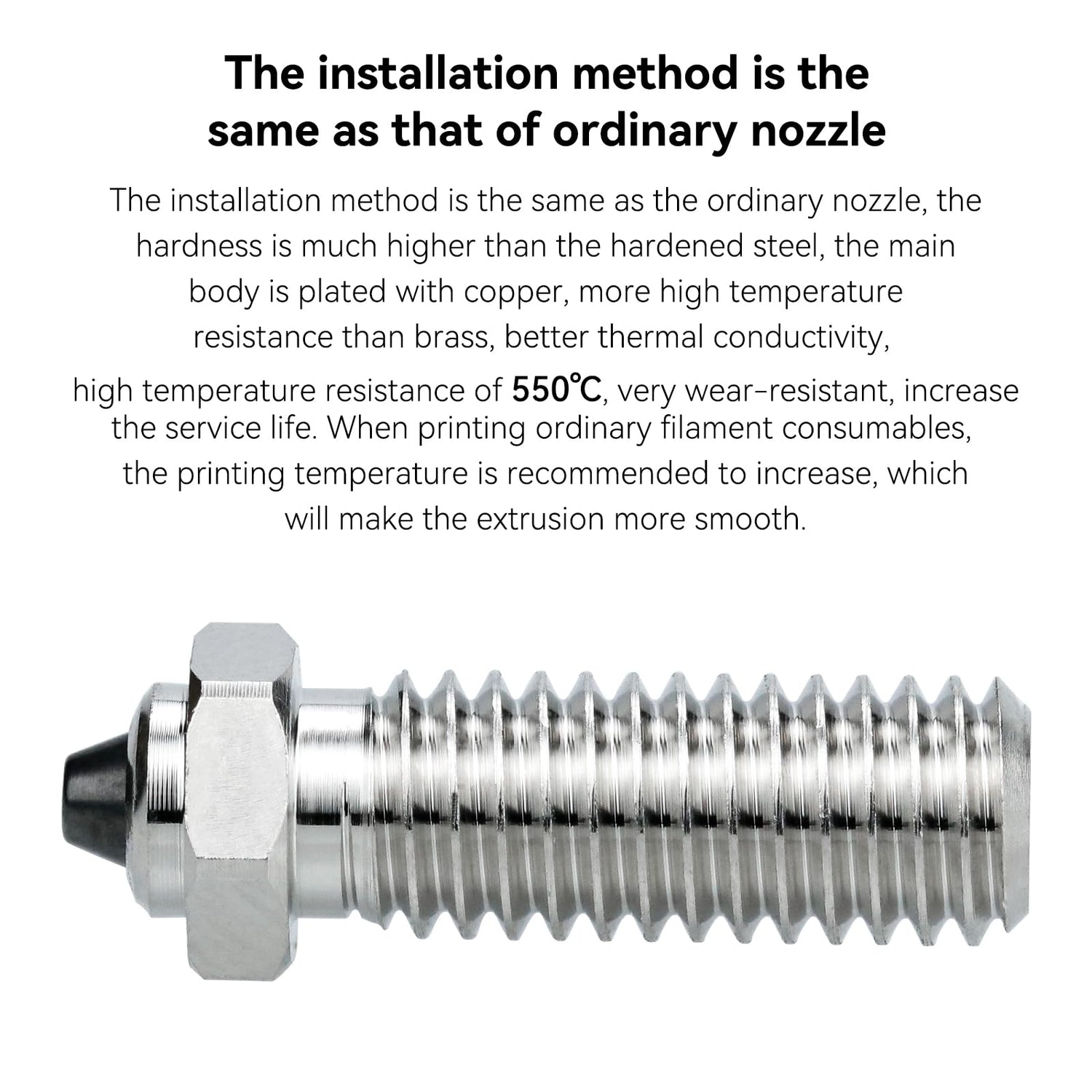 - One For Any Filaments: Its excellent abrasion resistant property makes it is not only suitable for highly abrasive filaments eg. CF, GF, Metal filled etc, but also works well with regular filaments eg PLA, ABS, TPU, PETG etc