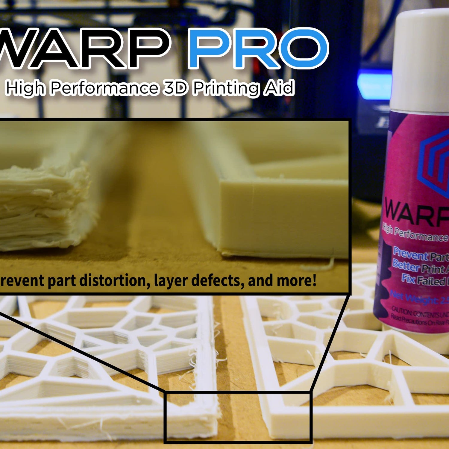 - NO MORE GLUE STICKS: Warp Pro is easily sprayed onto your 3D printing bed of choice and with a heated bed dries within seconds. Less mess and less time cleaning!
