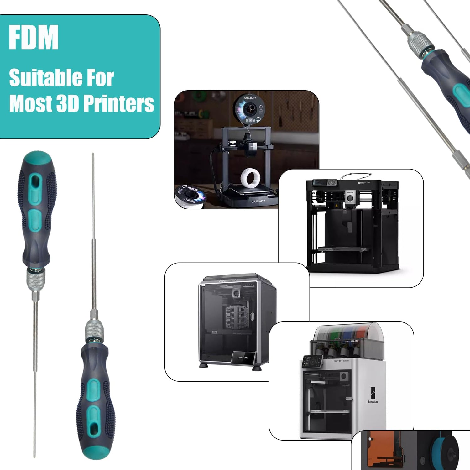 XIFOWE Clog Poke 3D Printer Accessories, Φ1.7mm L200mm Prolong Throat Piercing Needle Tool for Any 1.75mm Nozzles, 3D Printer Nozzle Cleaning Kit, Removable Needle, Quick Dredging, Reuse The Handle