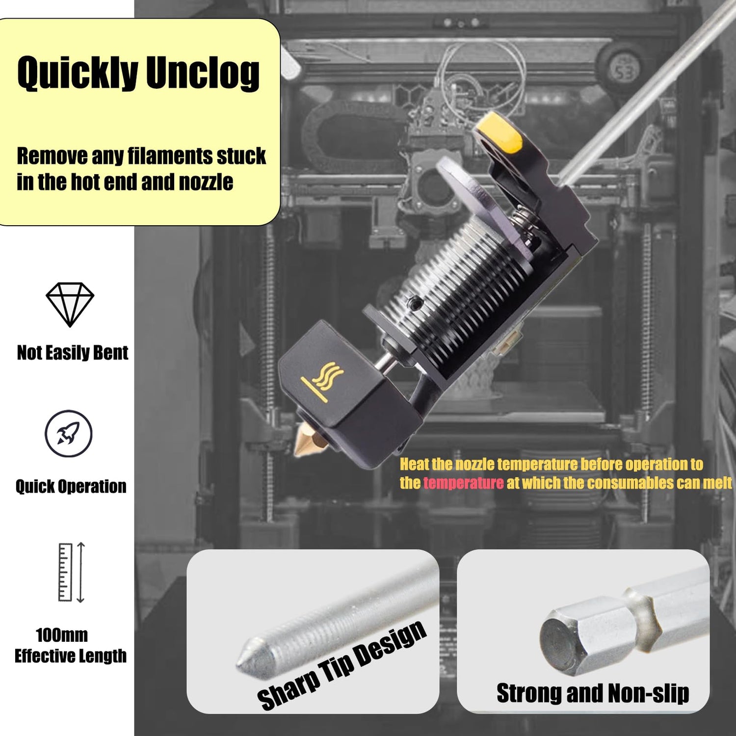 - Quality Guarantee: Made of quality chrome vanadium steel, wear-resistant and damage resistant.The needle is sharp, just one poke is enough to quickly deal with tricky nozzle blockage issues