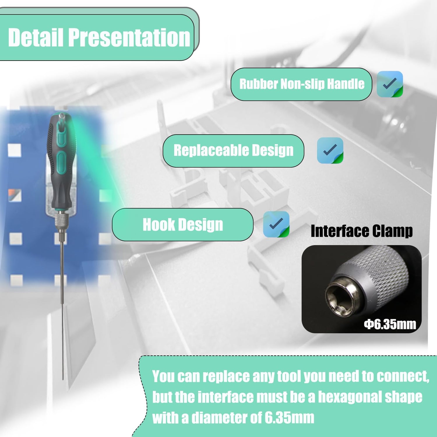 - Detachable Design: The handle adopts a buckle design, which can quickly replace the required cleaning needle and is sturdy and reliable.You can replace any tool you need to connect, but the interface must be a hexagonal shape with a diameter of 6.35mm