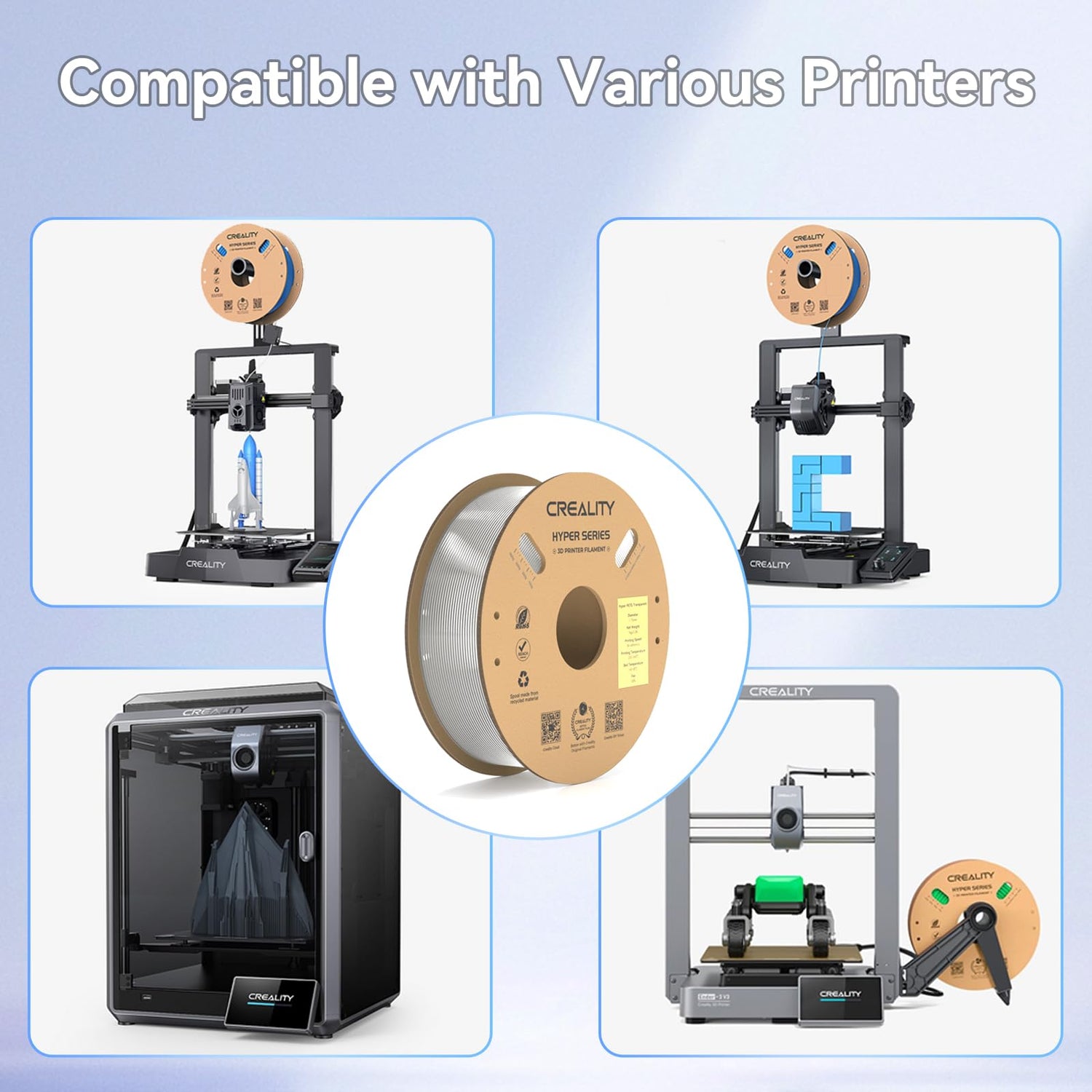 - High Transparency and Light Transmission: 3D printer filament Hyper PETG has excellent transparency, high light transmission and high gloss. Creality PETG have bright colors and smooth, delicate surfaces. This PETG rapid filament is perfect for printing artwork, toys, vases, lamps, gifts and more