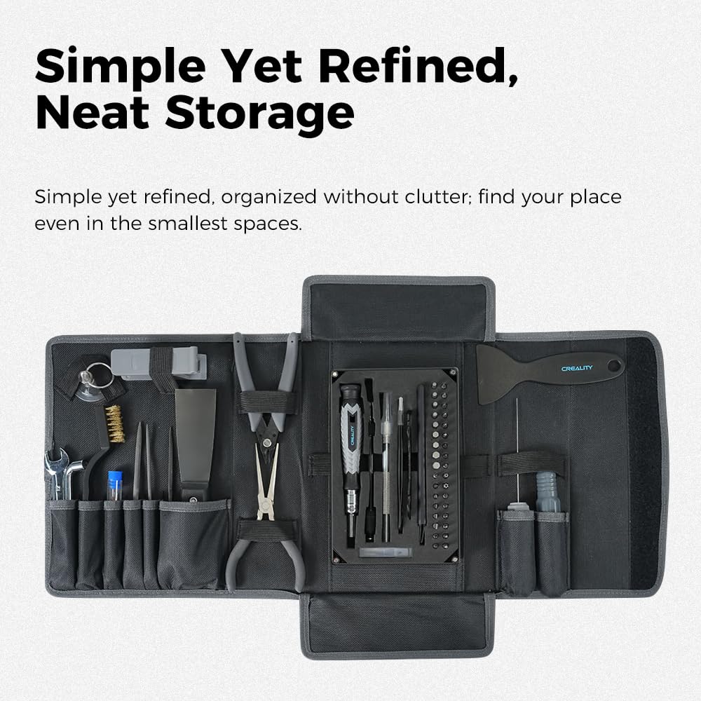 Creality Official 3D Printer Tools Kit, 74 Pcs in 1 3D Printing Tool Wrap Kit Assembly/Removal/Finishing/Deburring/Filament Cutting Tool with Nozzle Cleaning Kit for All FDM Printers