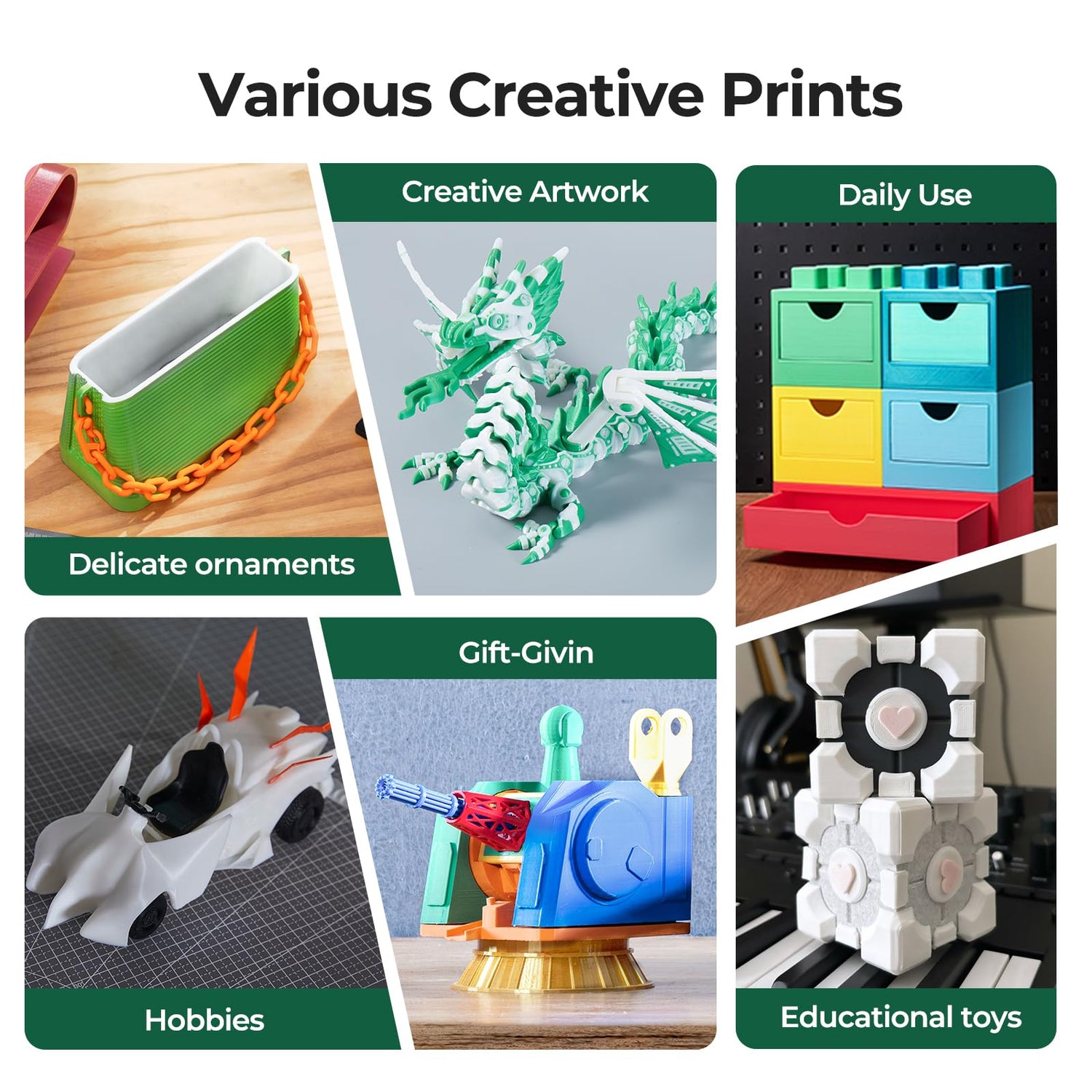 • 【High Strength & Durability】With improved toughness and strength, Creality PLA filaments are perfect for printing functional parts. The low shrinkage and stable dimensions result in excellent layer bonding and bridging, producing high - quality prints with a smooth surface finish.