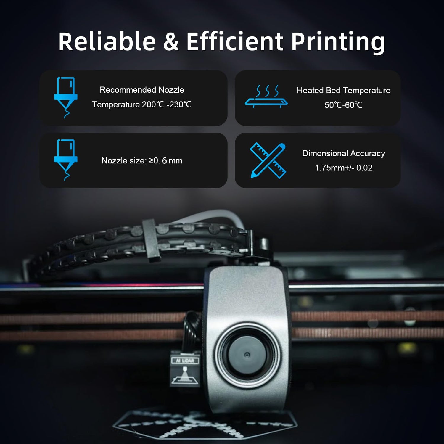 - 【Easy to Print】Easy to get quality prints with sharp details.Recommended extrusion nozzle temperature:180°C - 210°C (356°F - 410°F), hot bed temperature:50°C - 70°C (122℉~ 158℉),printing speed:20-40mm/s.
