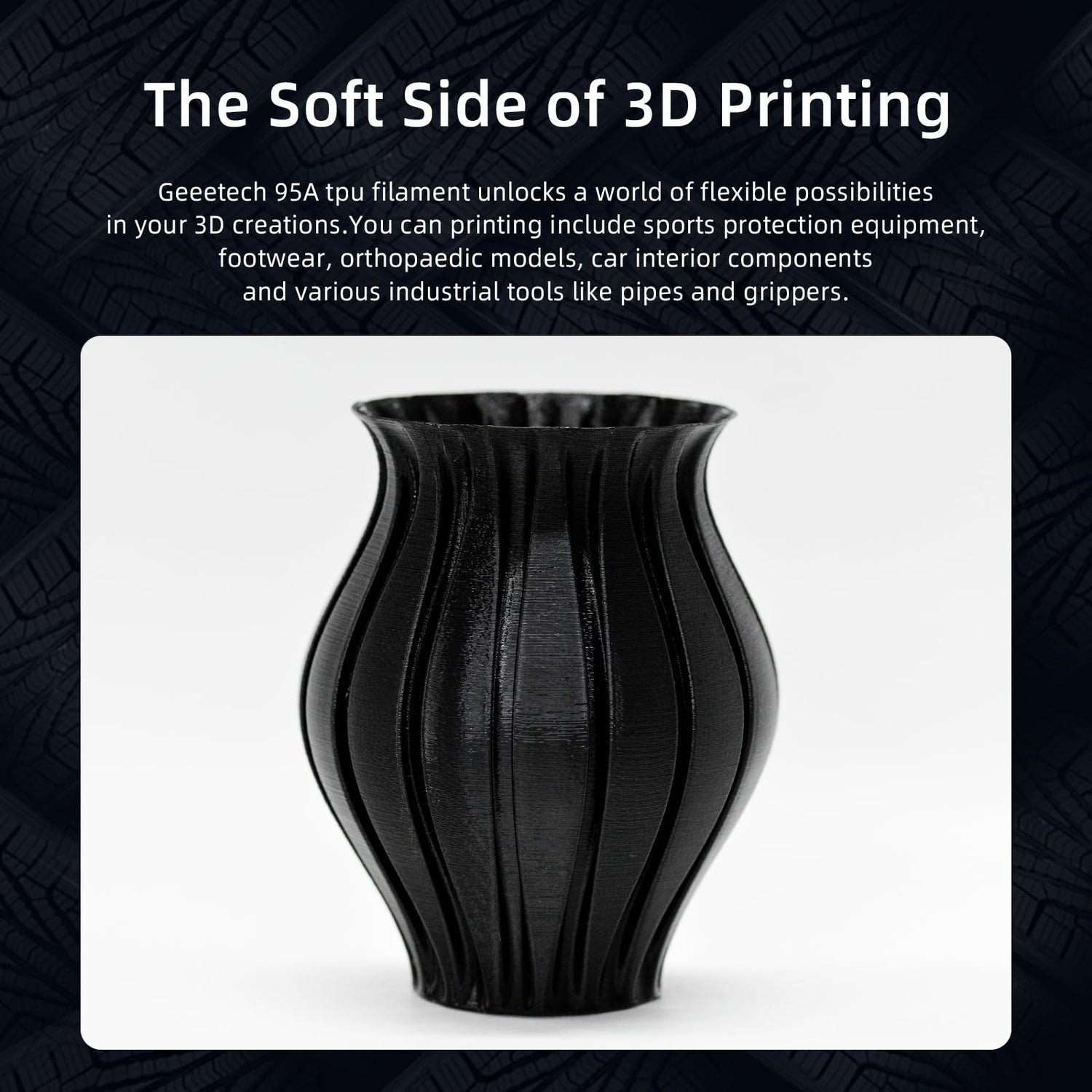 - 【Soft and High Elasticity】Geeetech TPU is highly flexible and tough, allowing you to print soft but strong parts.You can print a variety of projects with TPU, such as shoe insoles, watch bands, phone cases, drone parts and so on.