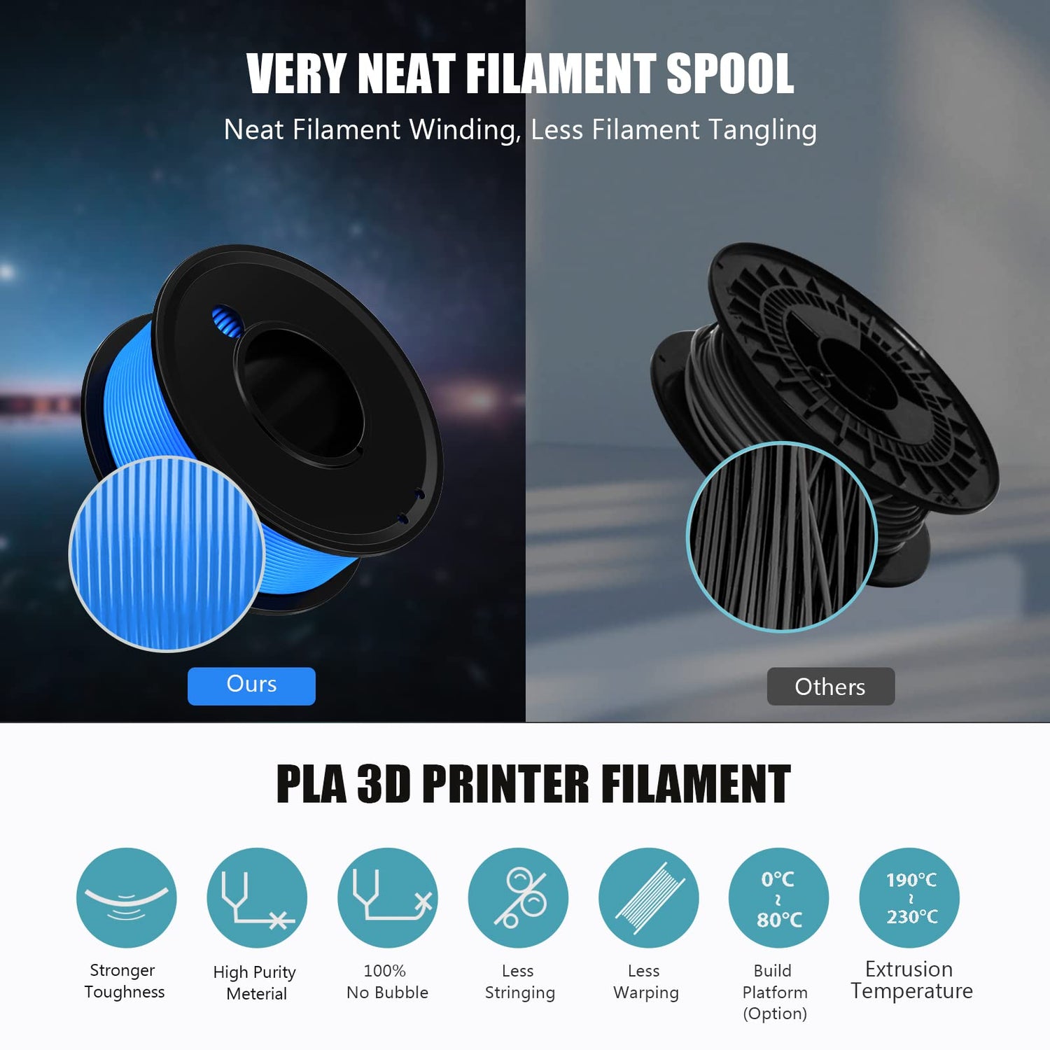 - 【VACUUM MULTIPACK】3D printer PLA fillamentum is made of biological materials extracted and purified from corn. Filimate is vacuum-sealed and has no bubbles, and can be good used by you and your family without bad smell and affecting the health of you and your family.