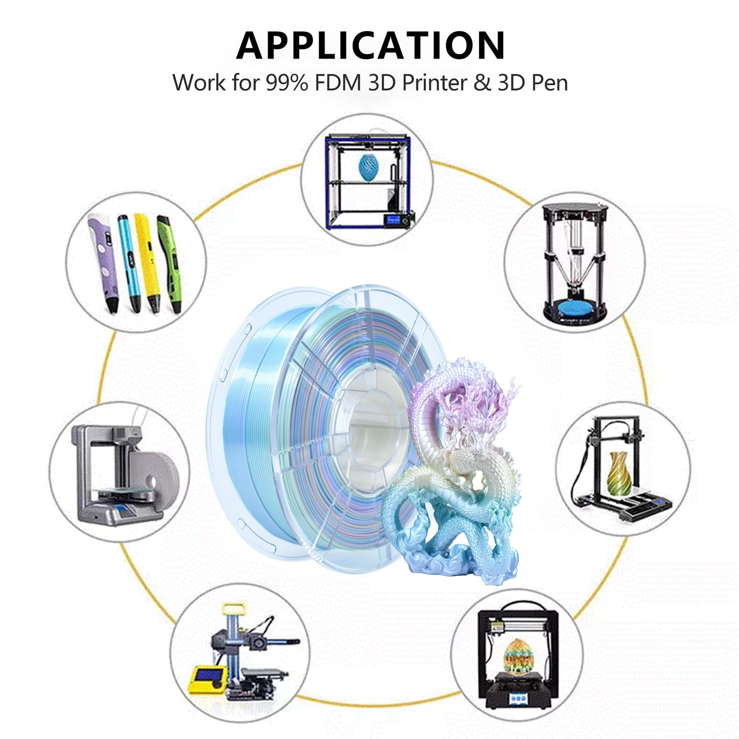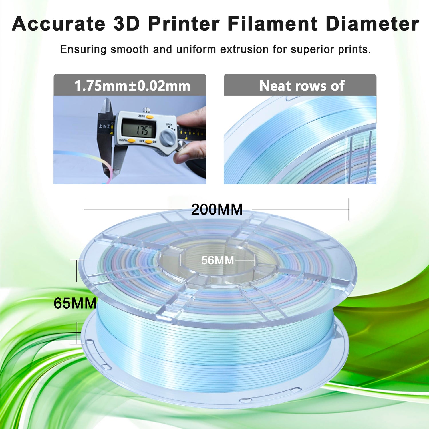 • ✨【Rainbow Color Silk PLA+ Filament】--- iBOSS Rainbow-color silk filament have a fast color change. With a 360° rotation, it reveals prints with various color combinations. Unlock your creativity with rainbow color printing capability with varying colors from different angles.