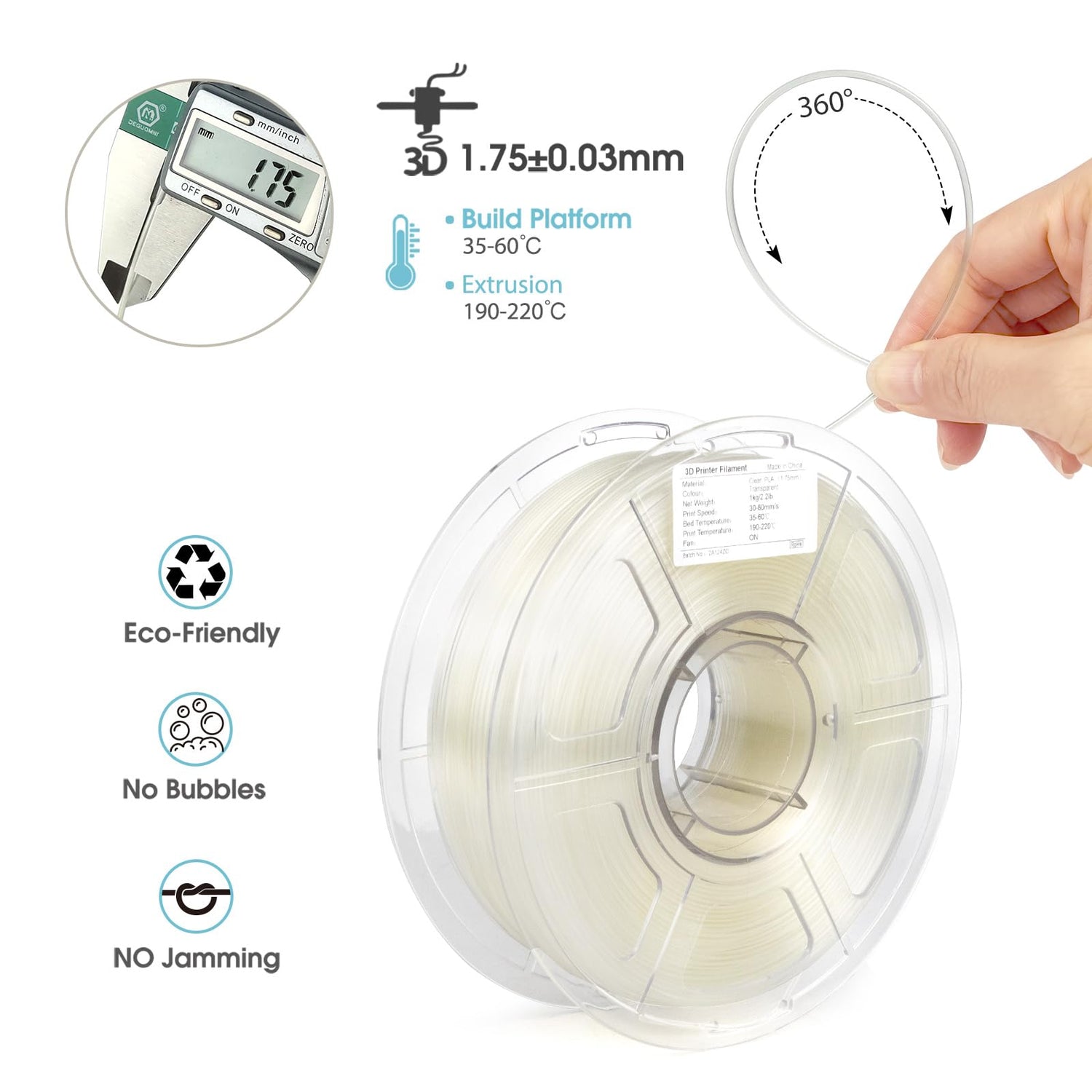 - π[High Quality]- PLA + Clear filament has superb layer bonding, and Impact Resistant and toughness are greater than conventional PLA filament;