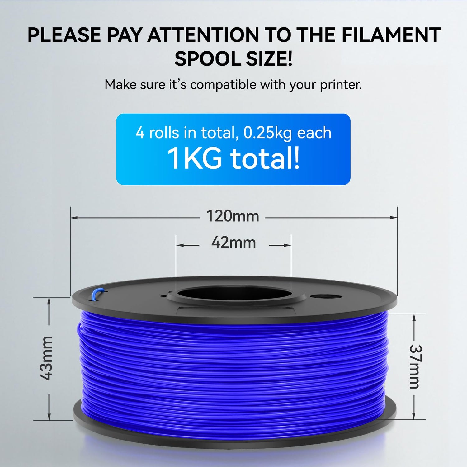 - TPU BUNDLE: TPU 3D printer filament combipack contains 4 spools, each spool contains 250g TPU filament Black, Clear, Blue, Red.