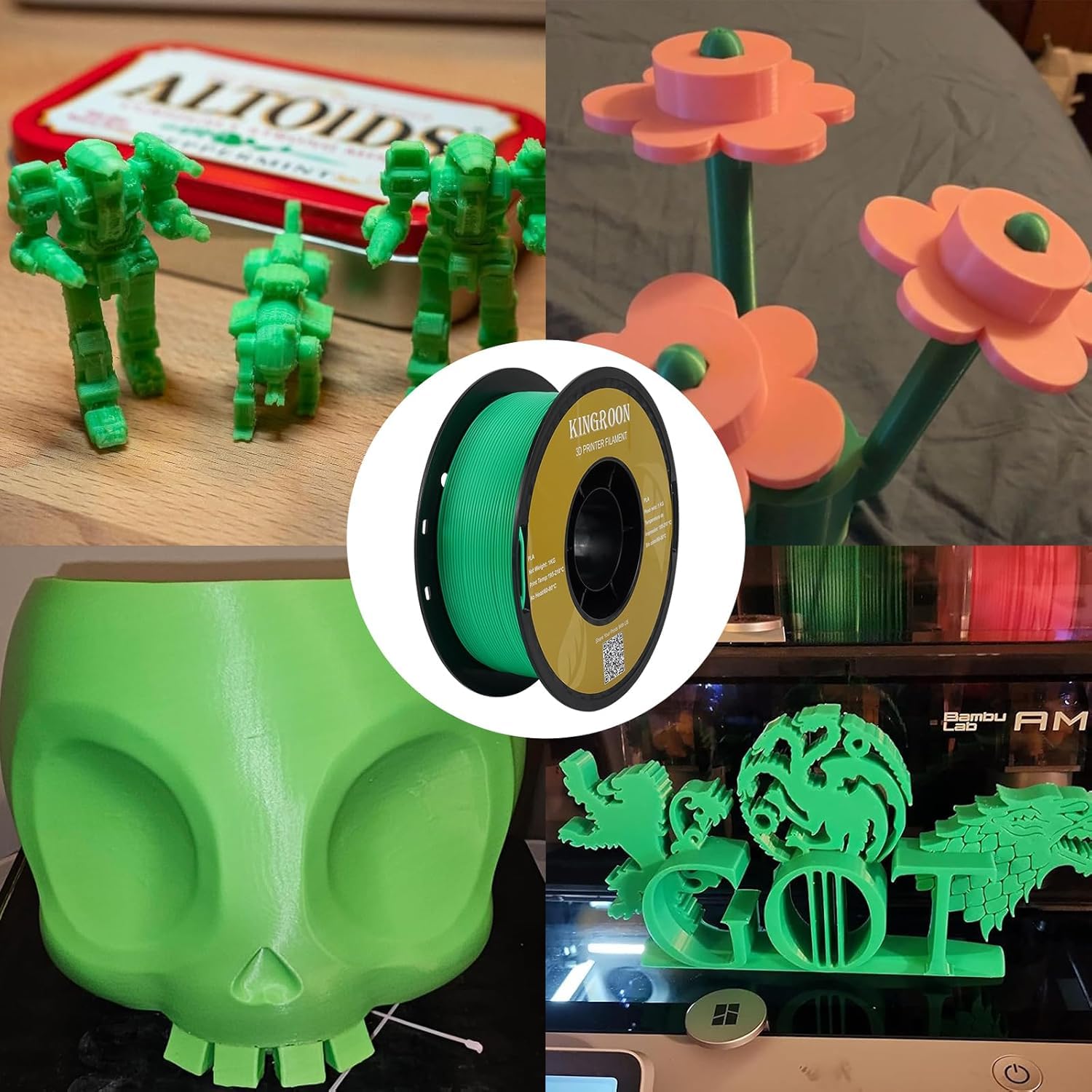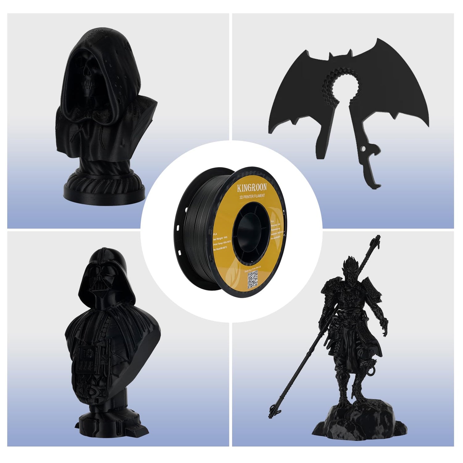 - Toughness Enhanced PLA Filament Bulk: Kingroon premium PLA filaments have the advantages of incredible ease of printing Optimized printing quality, high purity with low shrinkage and superb layer bonding, meeting your demands for printing projects of functional parts with higher toughness.