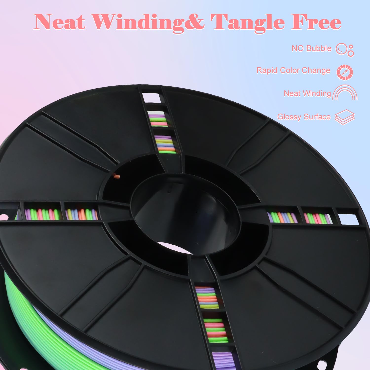 LOVOON Rainbow 3D Printing PLA Filament 1.75mm,Color Shift by Length, Multicolor Changing Filament with Matte Tiffany Blue/Mint Green/Pink/Purple/Peach Fuzz, Fit Most 3D Printer&Pen,1KG(2.2lbs)/Spool