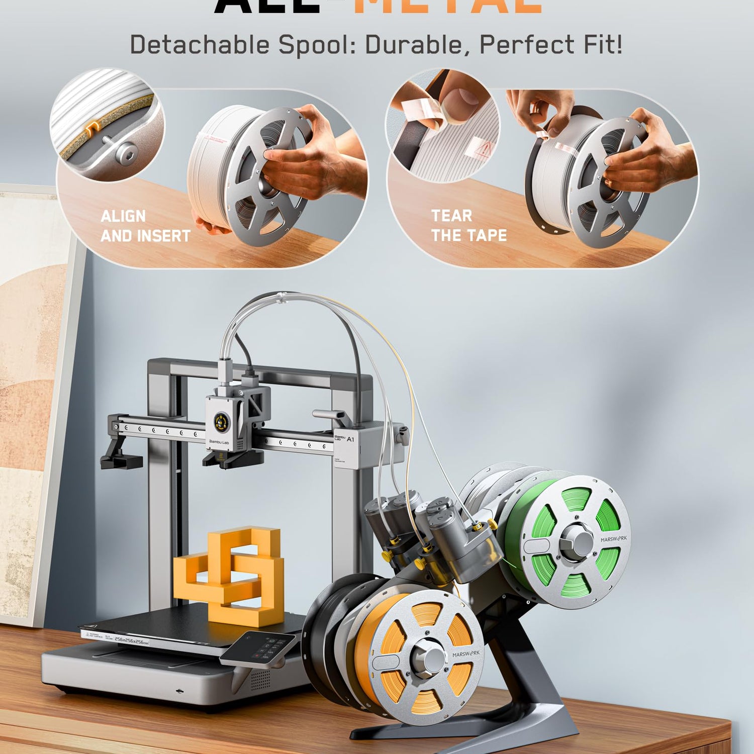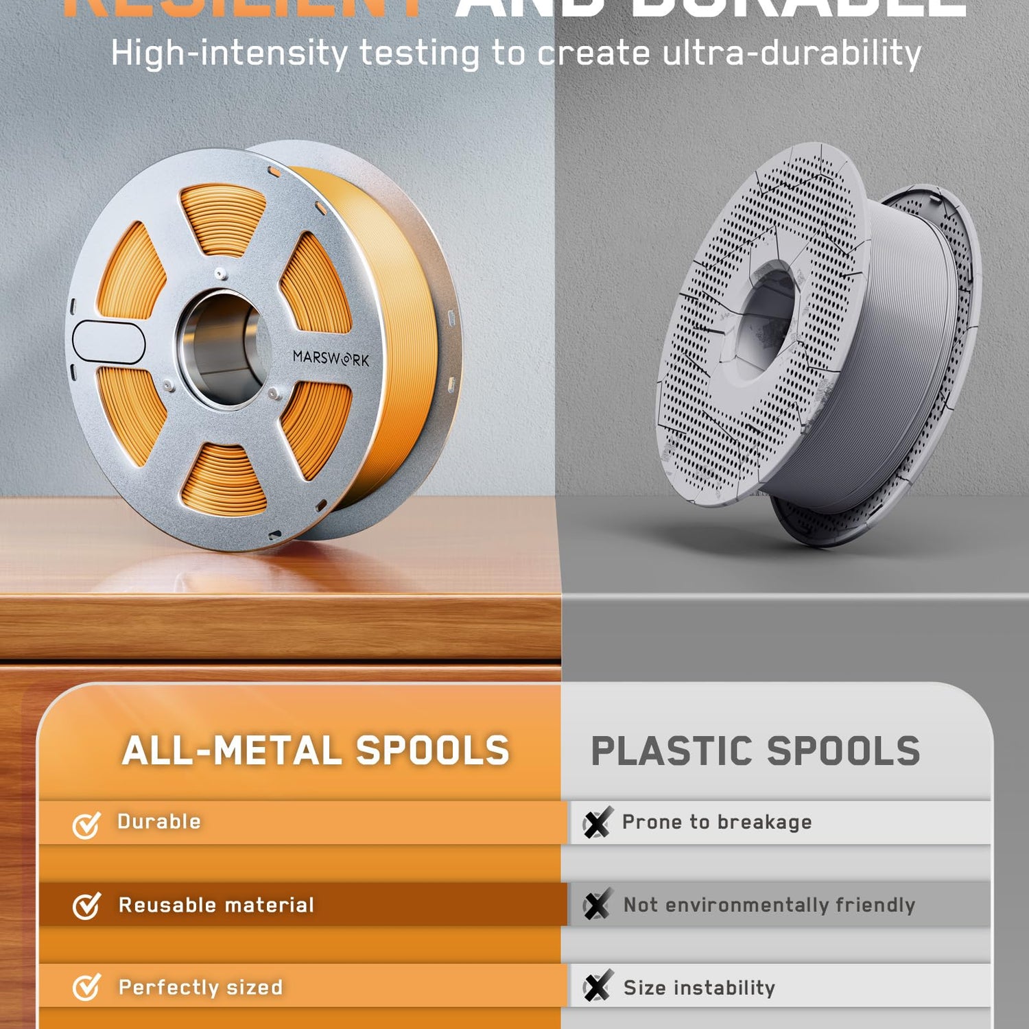 MarsWork 3D Printer Filament Reusable Aluminum Spool, Compatible with 1kg, 1.75mm PLA/TPU/ABS/PETG Filament, Compatible with Bambu Lab Filament Refill – Sustainable Printing Solution(Without filament)