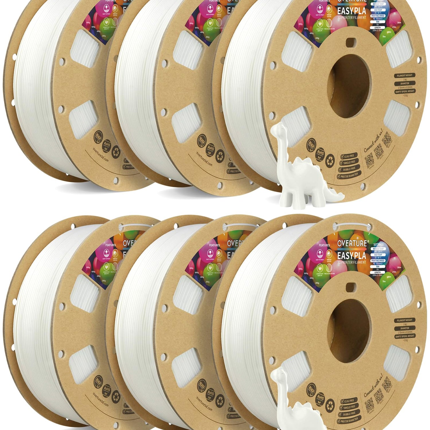 OVERTURE 6KG Bundle Easy PLA 1.75mm 3D Printer Filament, 6 Pack 1kg Spool (2.2lbs), Dimensional Accuracy +/- 0.02mm, Fit Most FDM Printe (Easy White*6)