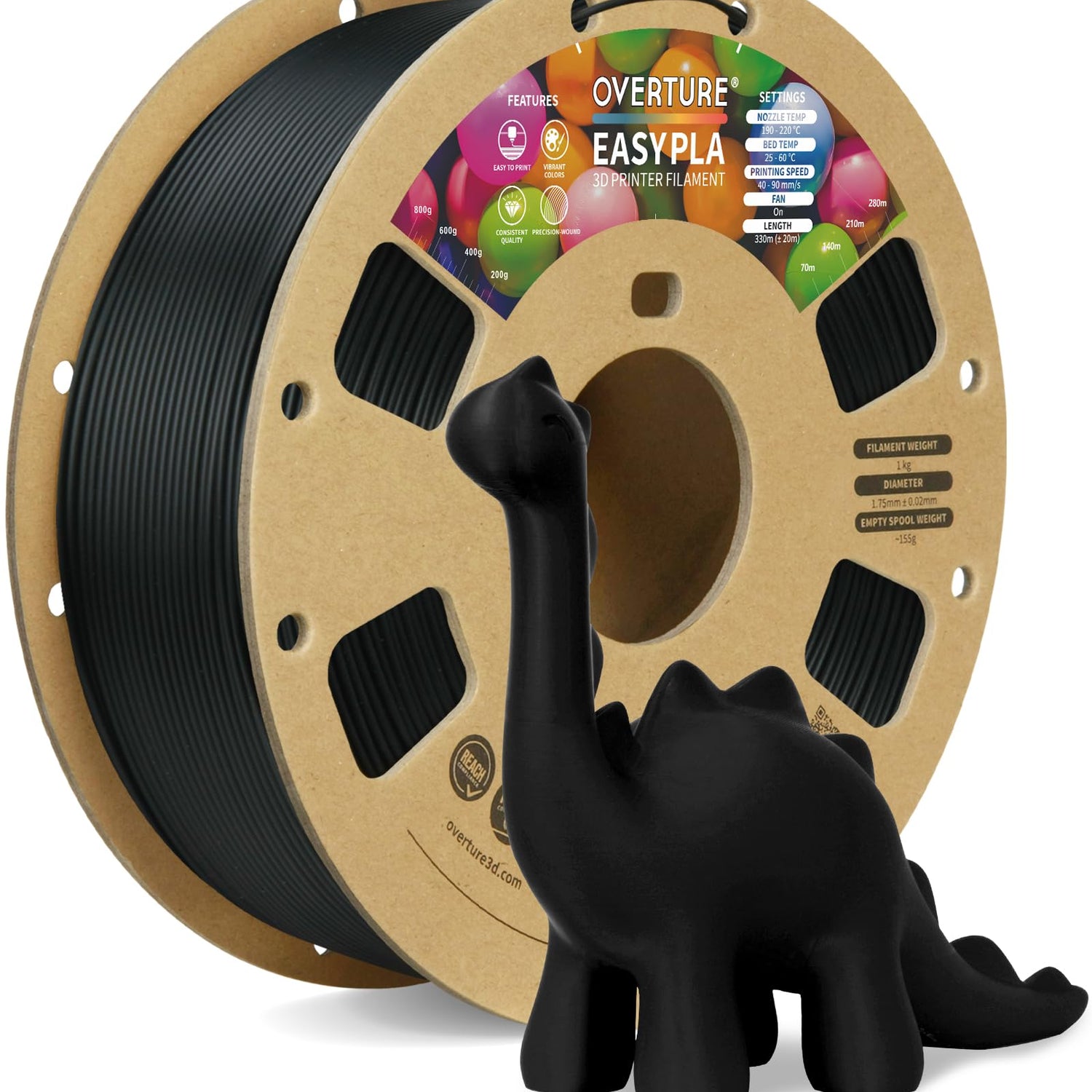 OVERTURE Easy PLA 1.75mm 3D Printer Filament, 1kg PLA Cardboard Spool (2.2lbs), Dimensional Accuracy +/- 0.02mm, Fit Most FDM Printer (Easy Black)