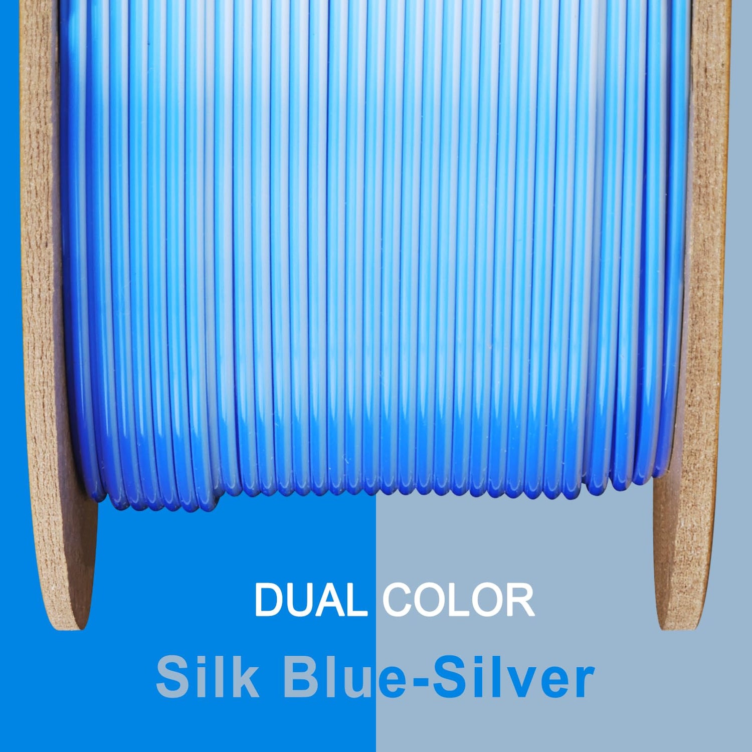 OVERTURE Silk PLA 1.75mm Dual Color Filament, Clog-Free Shiny 3D Printer Filament, 1kg Spool(2.2lbs), Dimensional Accuracy +/- 0.02 mm, Fit Most FDM Printer(Silk Blue-Silver)