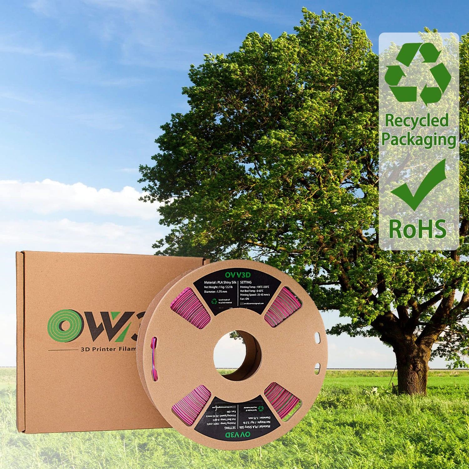 - 【Upgrade PLA Raw Material】The raw material comes from Europe, and it has been developed and modulated to show a charming gloss on the PLA. No jamming, no bubble, no tangle, and no layer line, just silk color changing PLA filament.