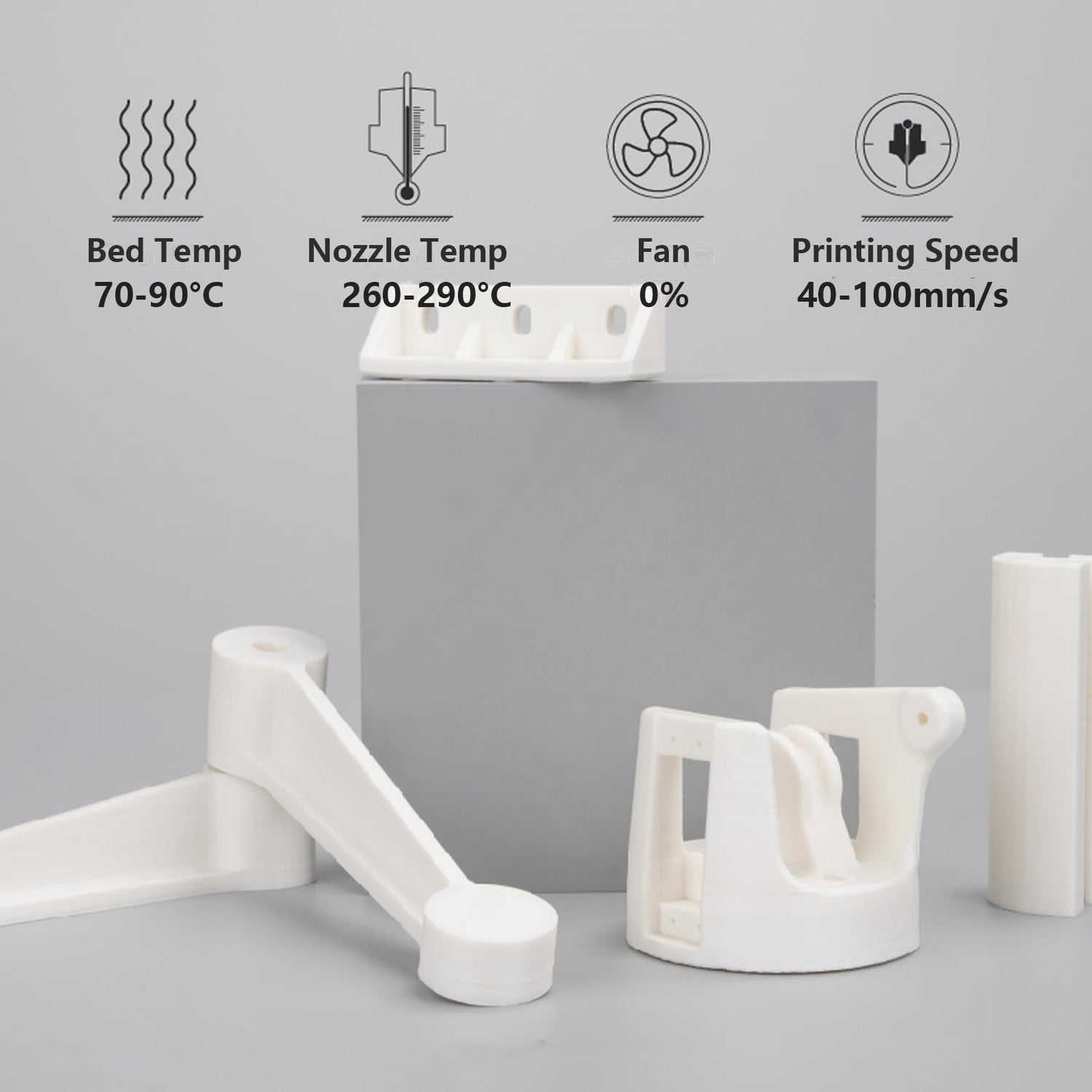 - High toughness and impact resistance: the elongation at break is as high as 165%, and it has excellent self-lubricating properties. Suitable for printing durable parts or mechanical gears.