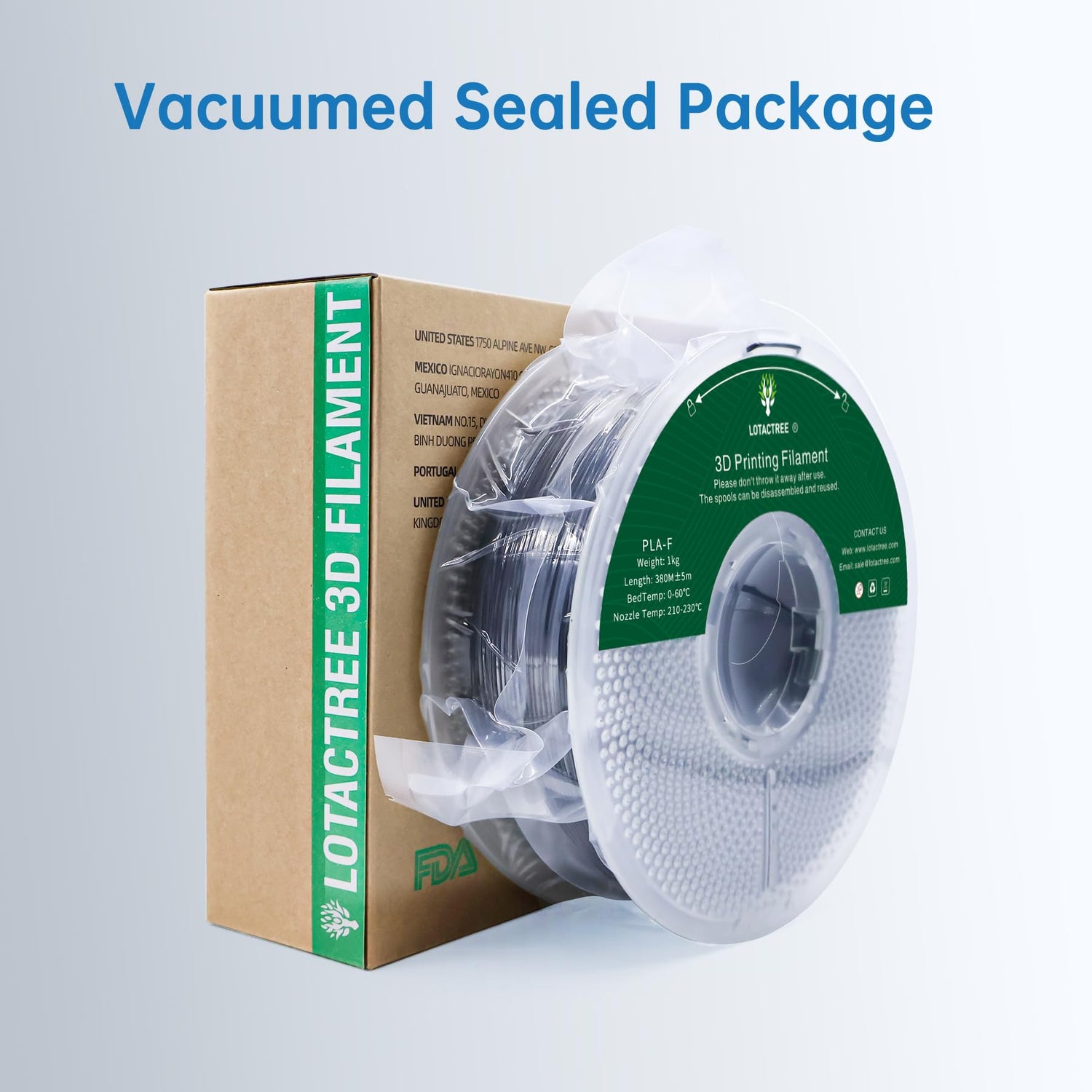 - VACUUM-SEALED PACKAGING: To eunsure optimal quality upon arrival, our PLA-F pro 3d filament is packaged in high-quality vacuum-sealed bags with desiccants. This ensures that the filament stays dry and in peak condition, ready for your next project.