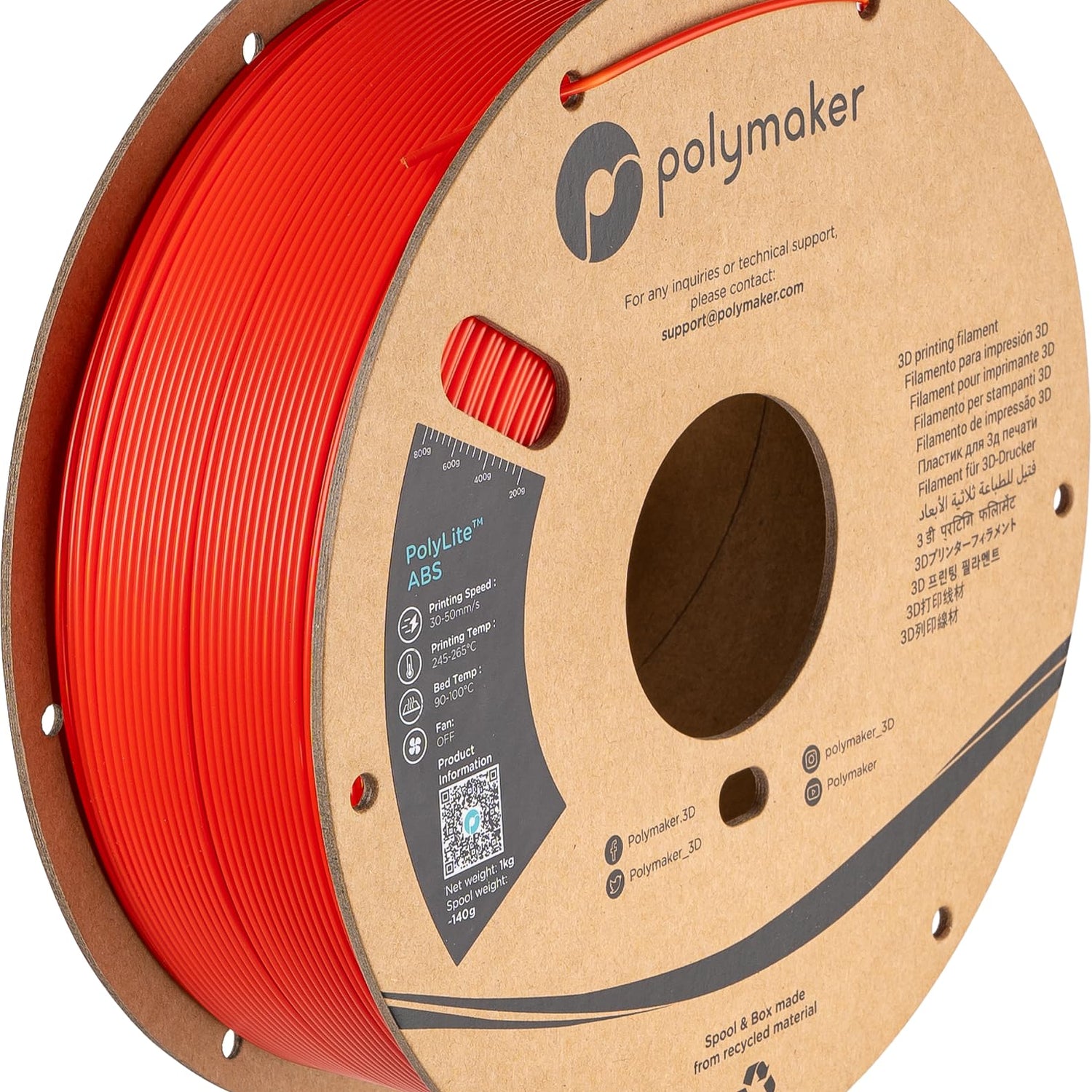 Polymaker ABS Filament 1.75mm Red, ABS 3D Printer Filament 1.75mm Heat Resistant 1kg - PolyLite ABS 3D Printing Filament 1.75mm, Strong & Durable, Dimensional Accuracy +/- 0.03mm