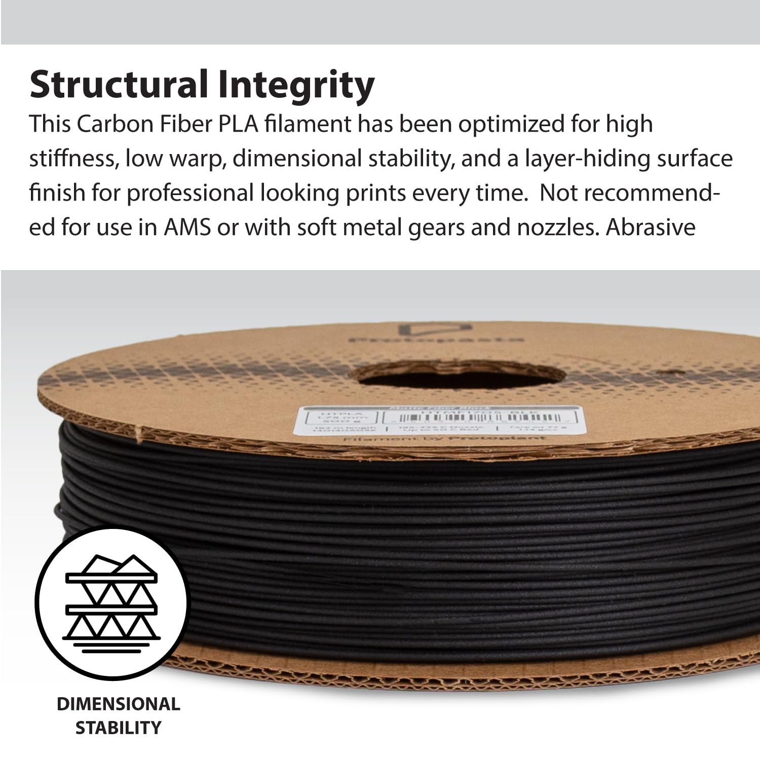 - The Original Carbon Fiber Composite PLA - This filament is slightly more abrasive than standard PLA. Be prepared to replace your nozzle and do 1st layer adjustment after prolonged use or upgrade to a wear resistant nozzle for less maintenance.