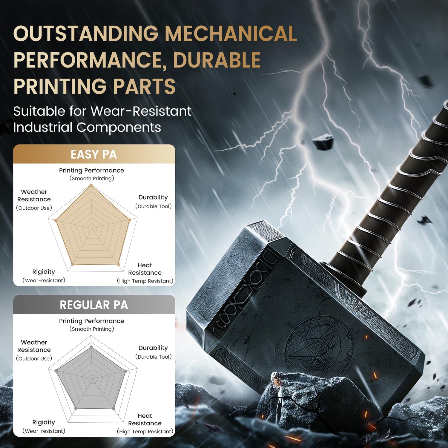 - HIGH STRENGTH PA FILAMENT 1.75 - PA 3D filament resists damage from abrasion and friction, ensuring durability. Even if finished model is dropped, it won't crack.