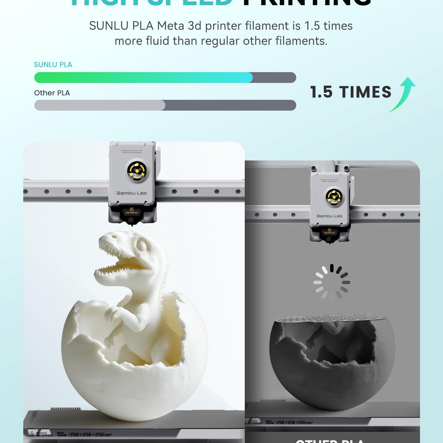 - SUPERIOR FLUIDITY: SUNLU meta pla 3D printer filament flows like butter with excellent fluidity, which is simple to print with this filaments without clogging