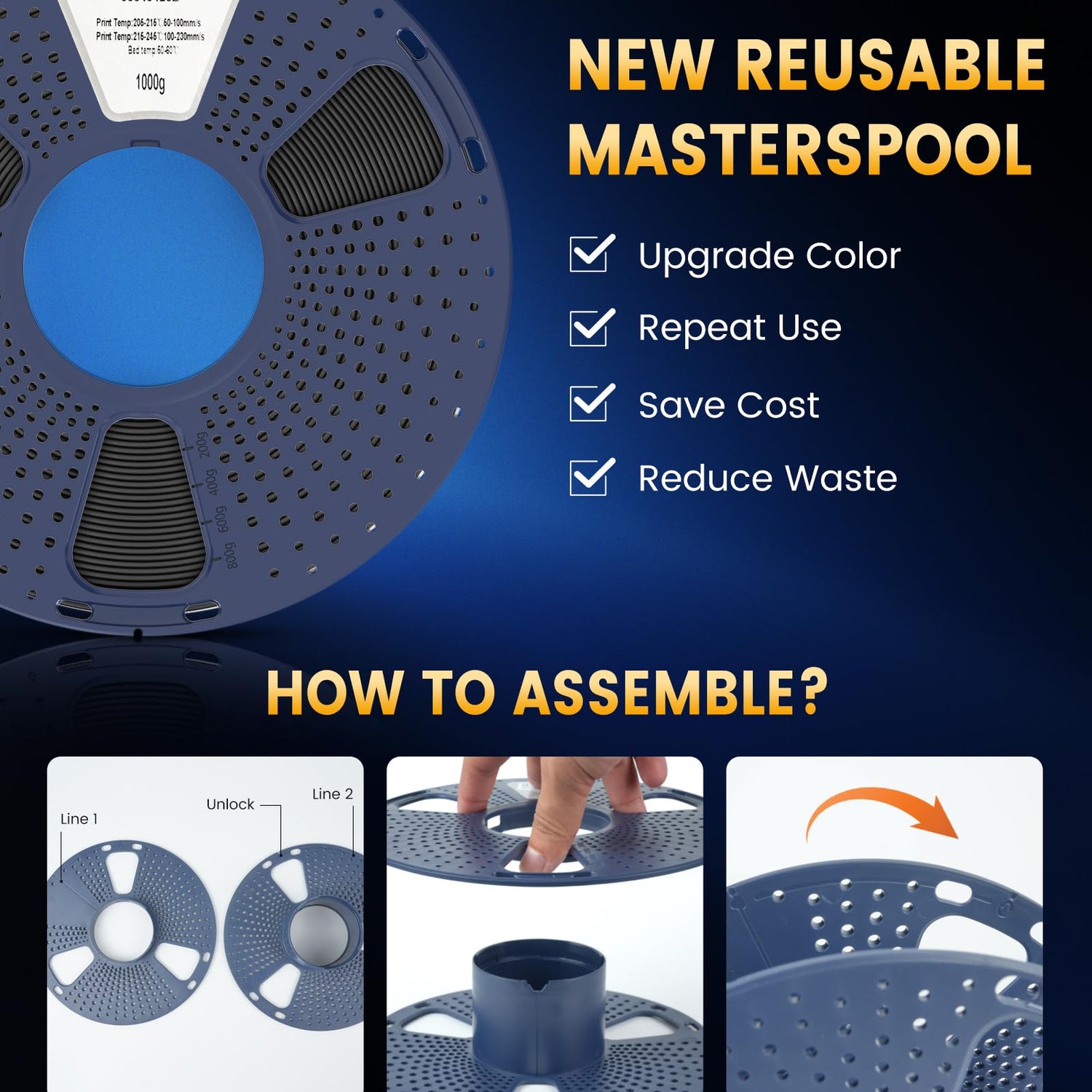 - Filament Spool Dimensions: 1KG Spool Diameter: 195mm, Spool Width: 57mm, Spool Hub Hole Diameter: 63mm. SUNLU reusable spool reduce waste