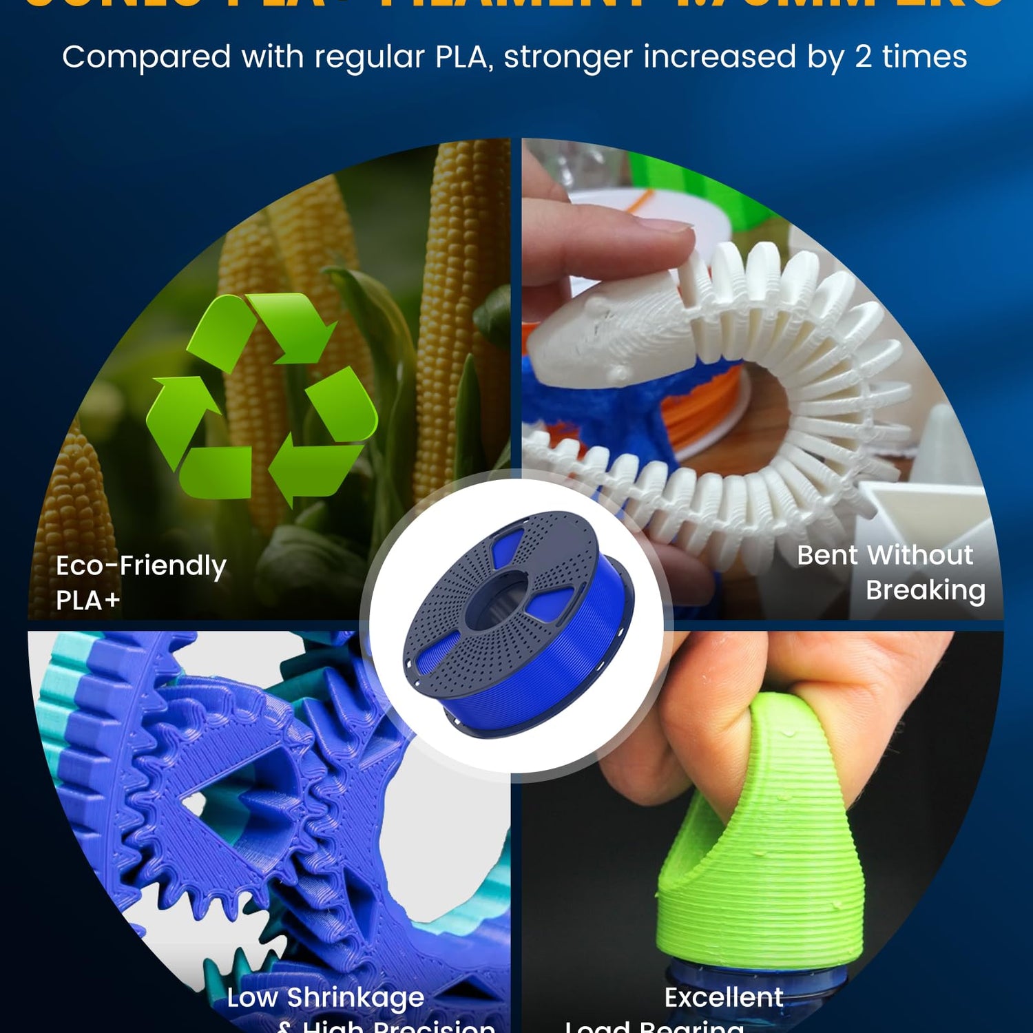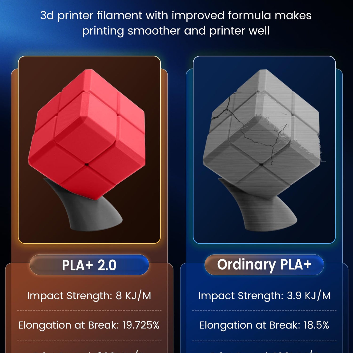 - Upgrade PLA+ Filament: Compared to standard PLA+ filament, SUNLU PLA+ 2.0 is more resistant to brittleness and cracking, making your prints stronger and more durable