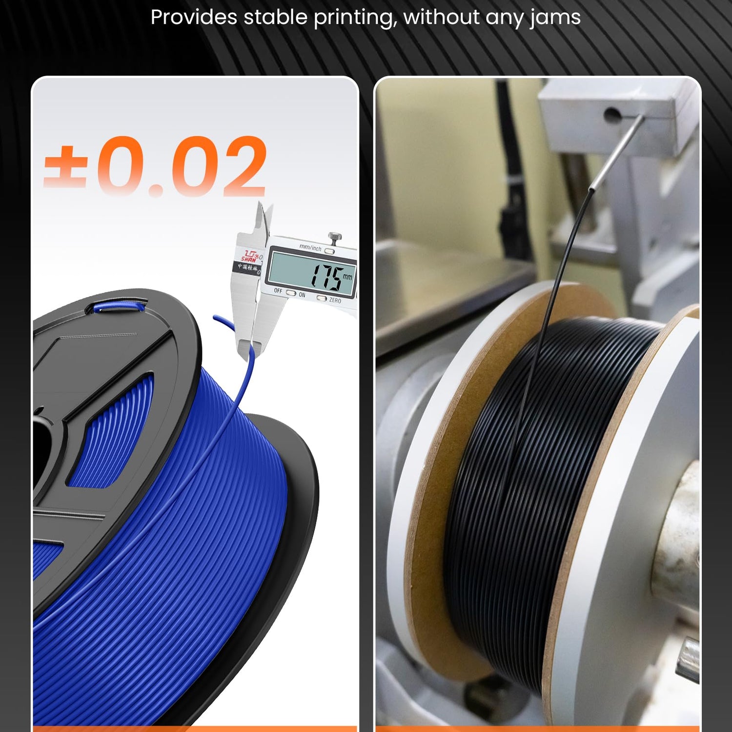 - TANGLE-FREE PLA FILAMENT - Full mechanical winding and strict manual examination reduce the risk of tangles and jams,provides a smoother printing. Neatly wound filament guarantee the pla easy to be fed.