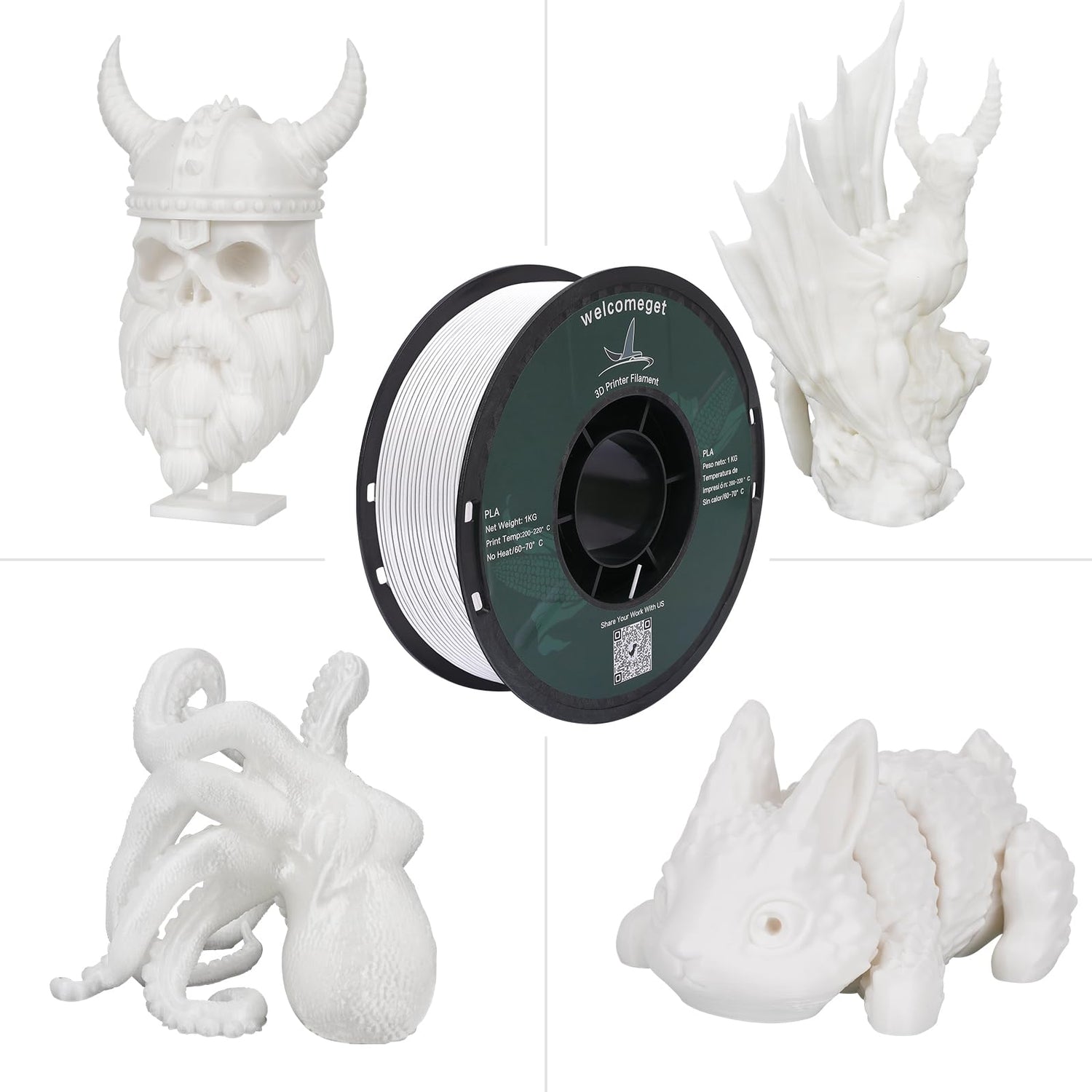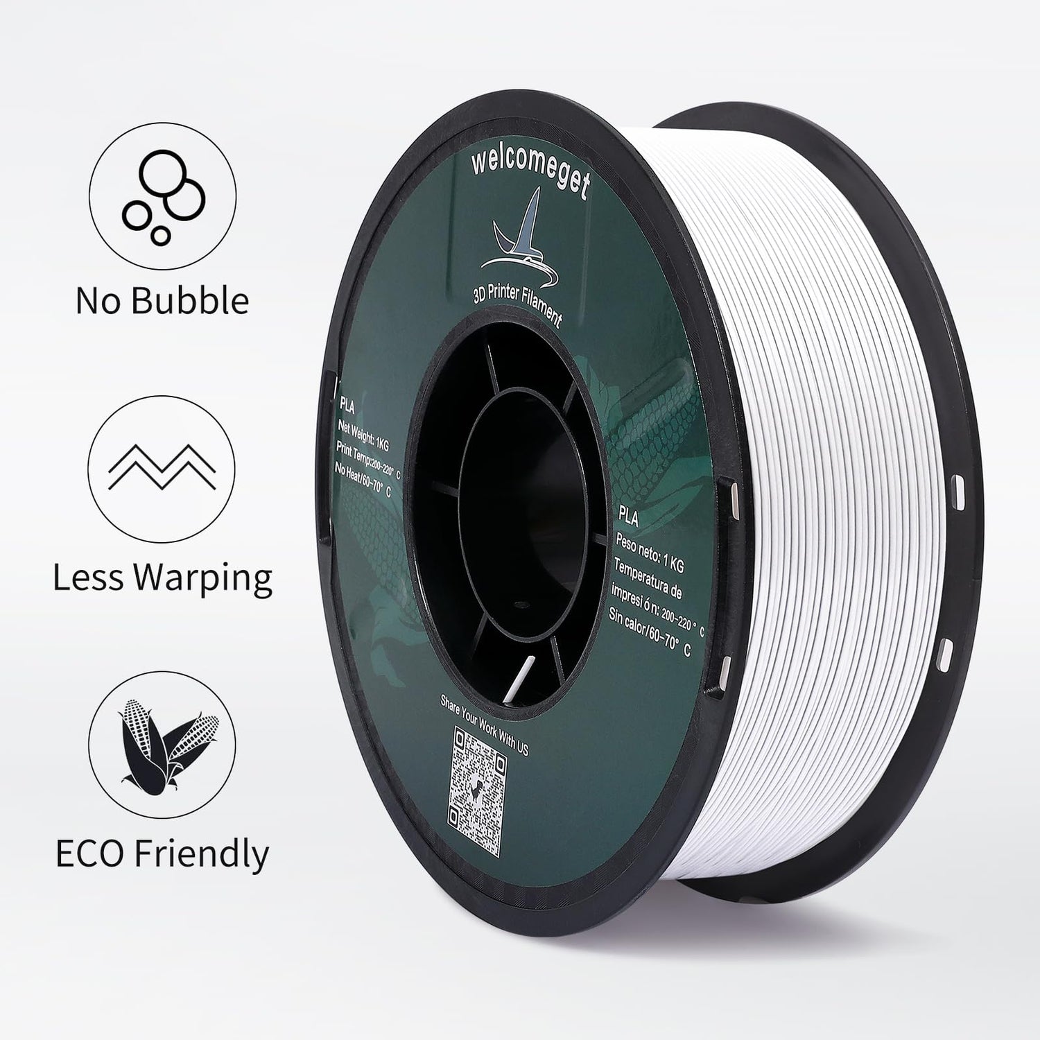 - No edge warping, good gloss, low shrinkage: Welcomeget PLA Plus Filament has a new color tone, giving you a brand new visual effect. PLA+ wire has good adhesion and super strong interlayer bonding. The surface gloss of the filament is good, and the color is soft and warm, making the 3D printing model smooth and delicate.