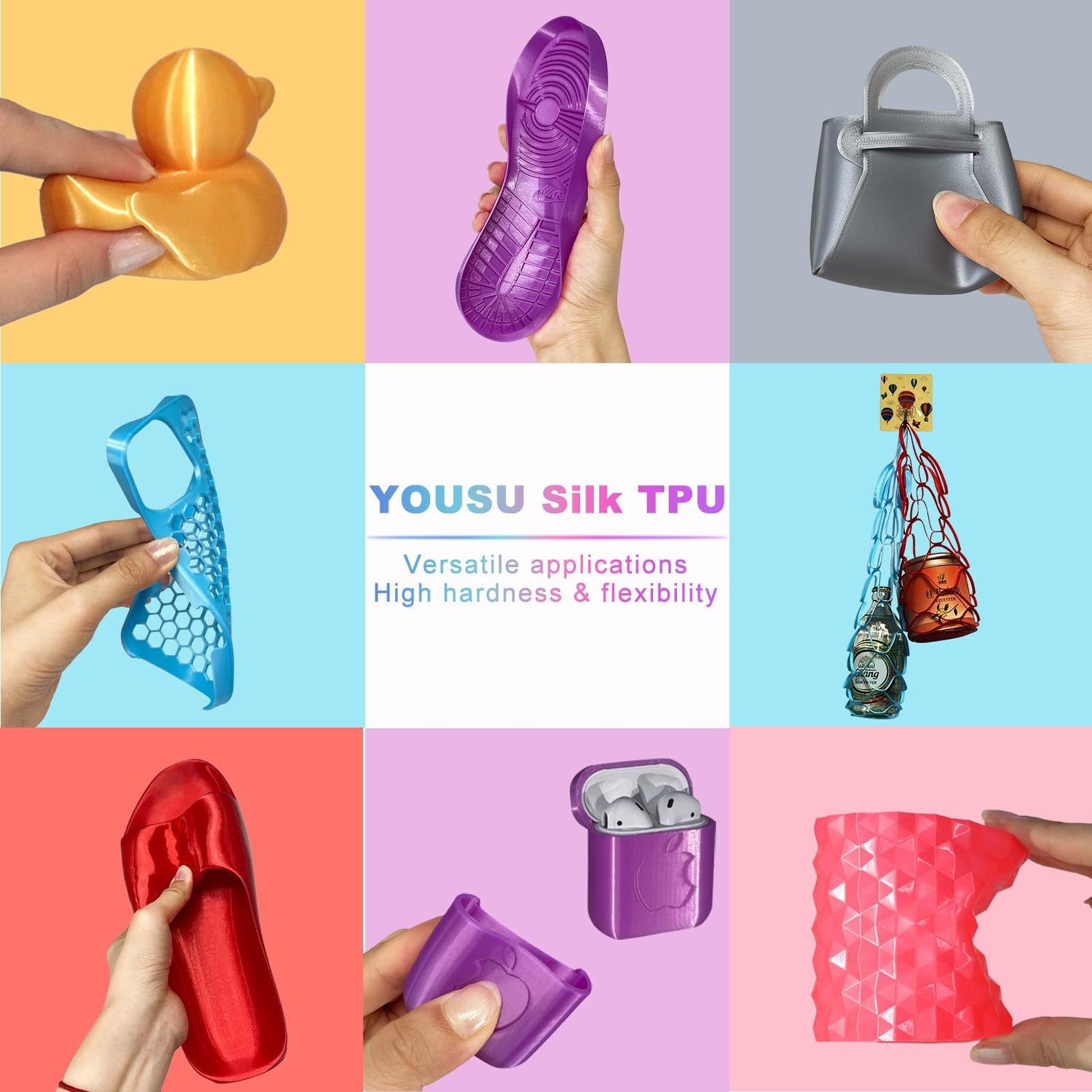 - 【Shiny Silk TPU Filament】 YOUSU Silk TPU filament has a shiny and smooth surface, with a silk effect without polishing, making your 3D printing more attractive and unique.