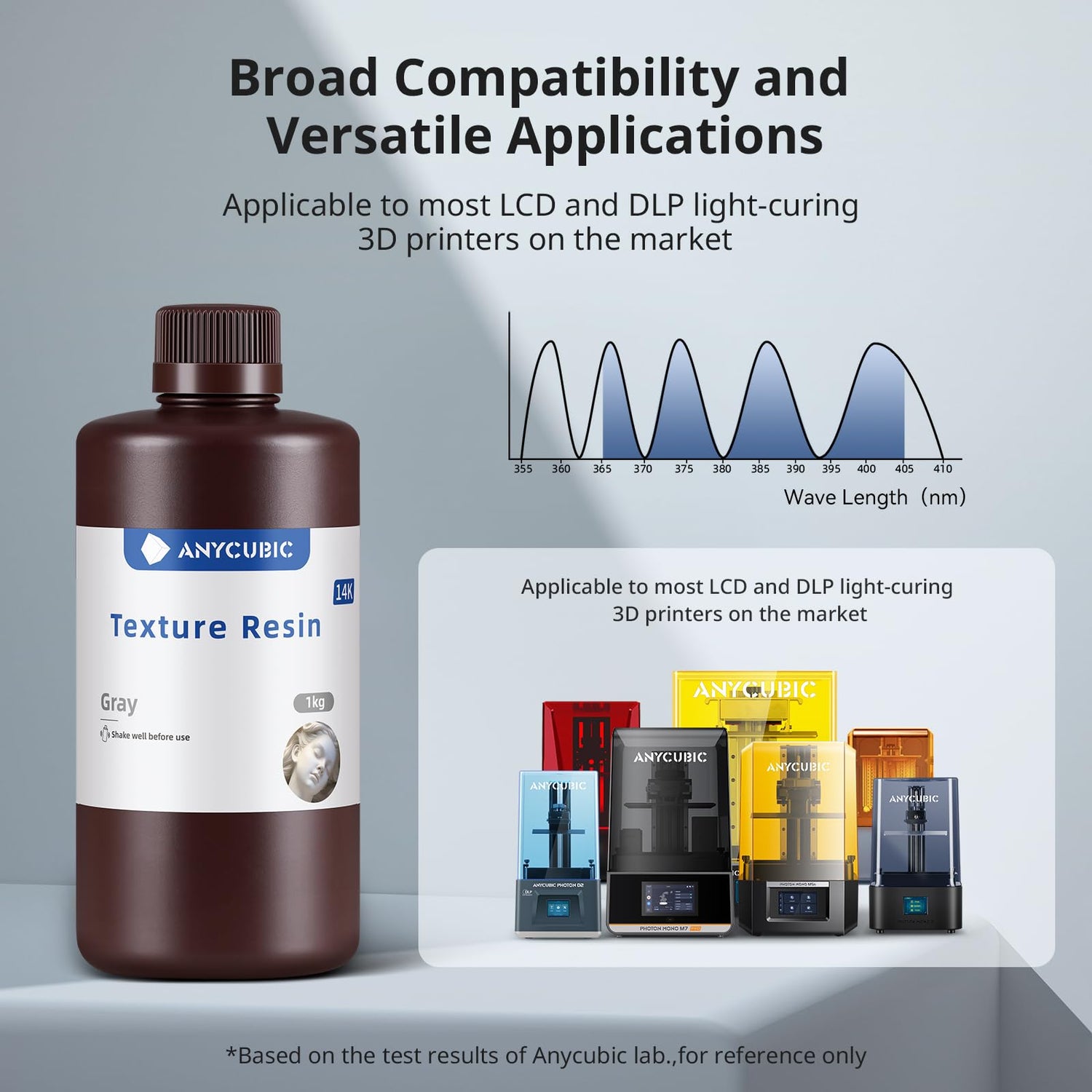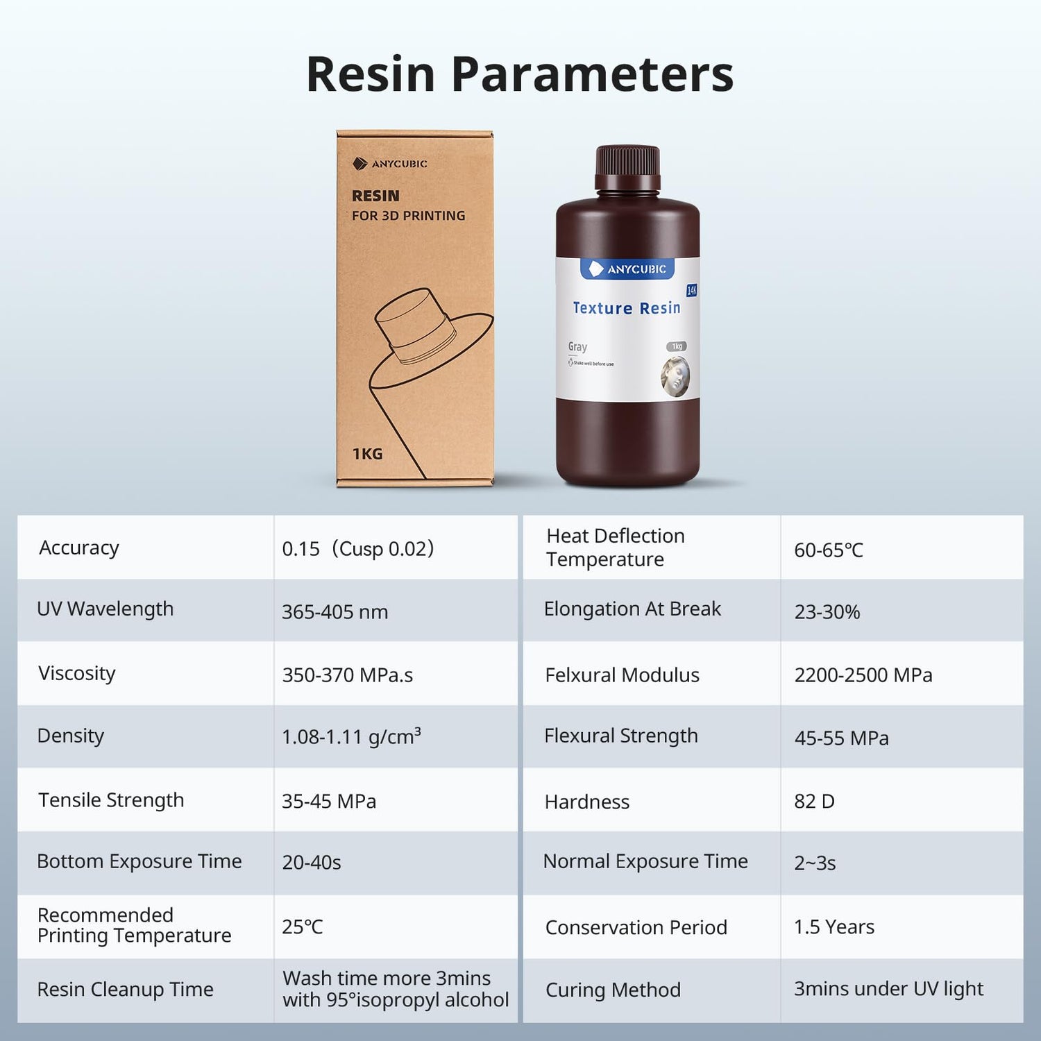 - 【Minimal Shrinkage】ANYCUBIC 3D Texture Resin minimizes volumetric deformation and shrinkage during the printing process, producing an accurate 1:1 scale of your idealistic design.