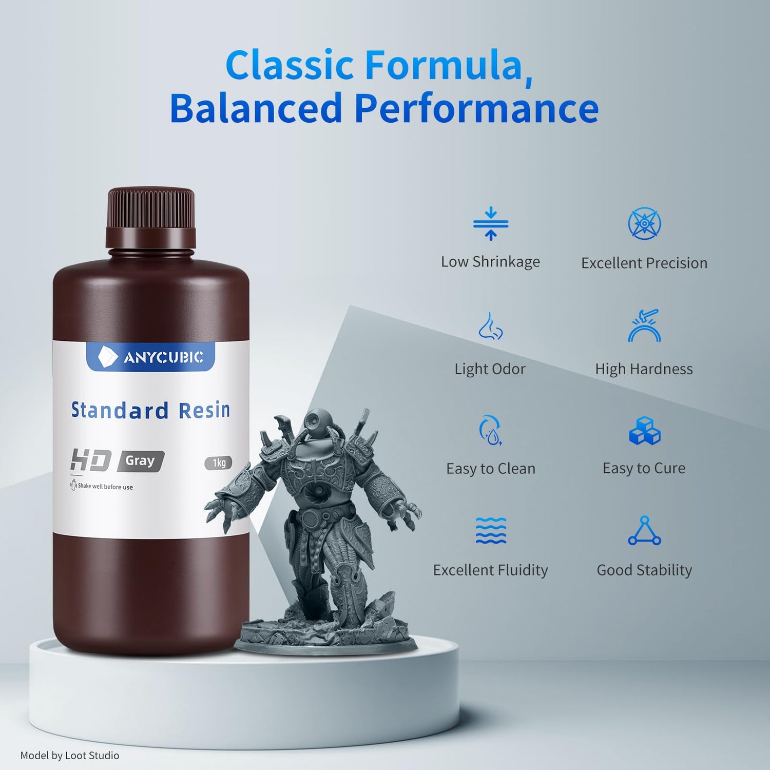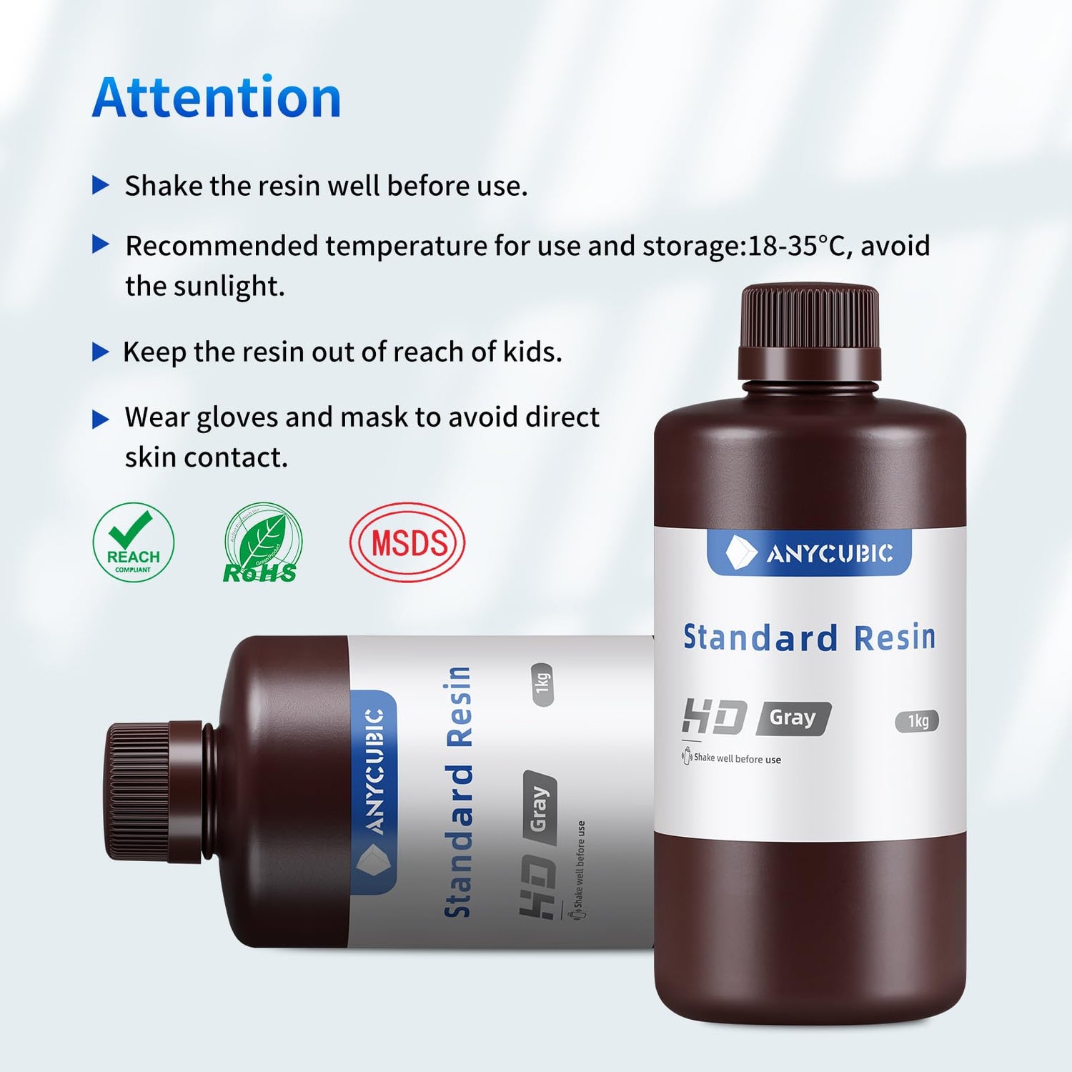 ANYCUBIC 3D Printer Resin, 405nm LCD UV-Curing 3D Resin, High Precision & Rapid Photopolymer Resin for LCD/DLP/SLA Resin 3D Printer (HD Grey, 1kg)