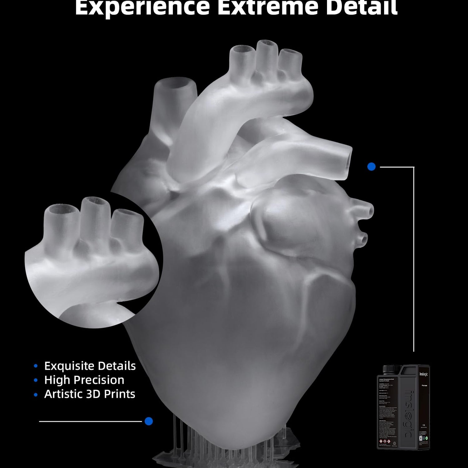 • 【High Transparency Resin】A 3D Printer resin specially designed for transparency, with high resolution and accuracy to showcase internal details. It's perfect for applications like anatomical models, miniatures, lighting, and more.